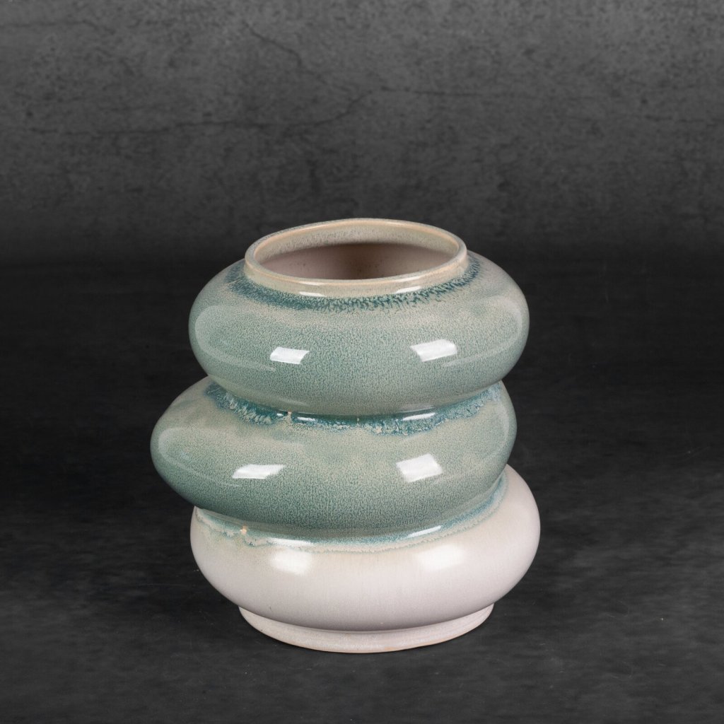 Dekorativní váza šířka: 19 cm, délka: 18 cm, barva: krémová/zelená, složení: keramická hlína.Doplňkové parametry