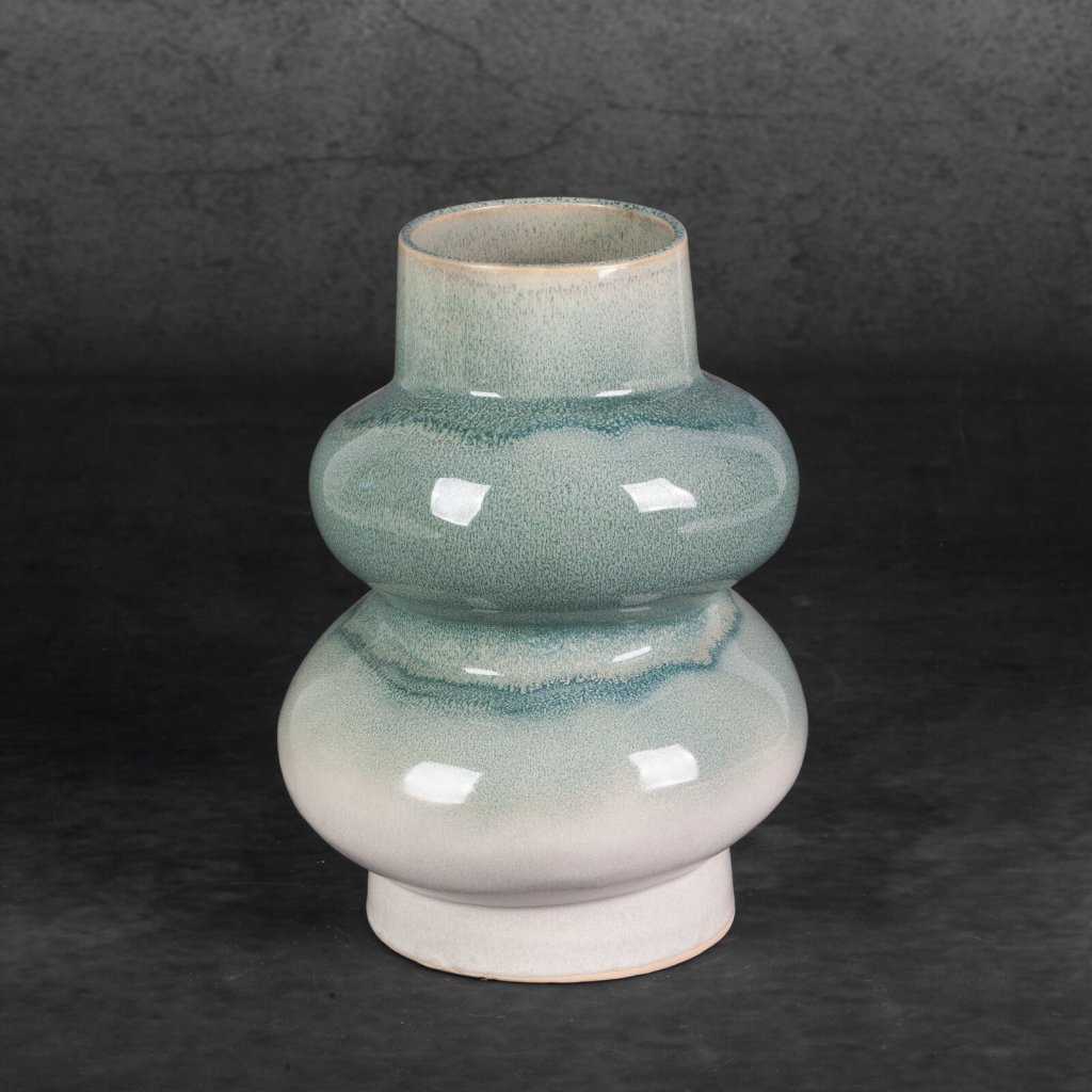 Dekorativní váza šířka: (fi) 17 cm, délka: 23 cm, barva: krémová/zelená, složení: keramická hlína.Doplňkové parametry