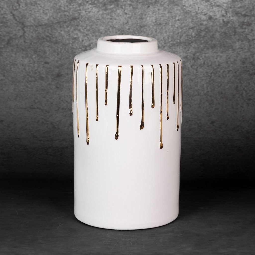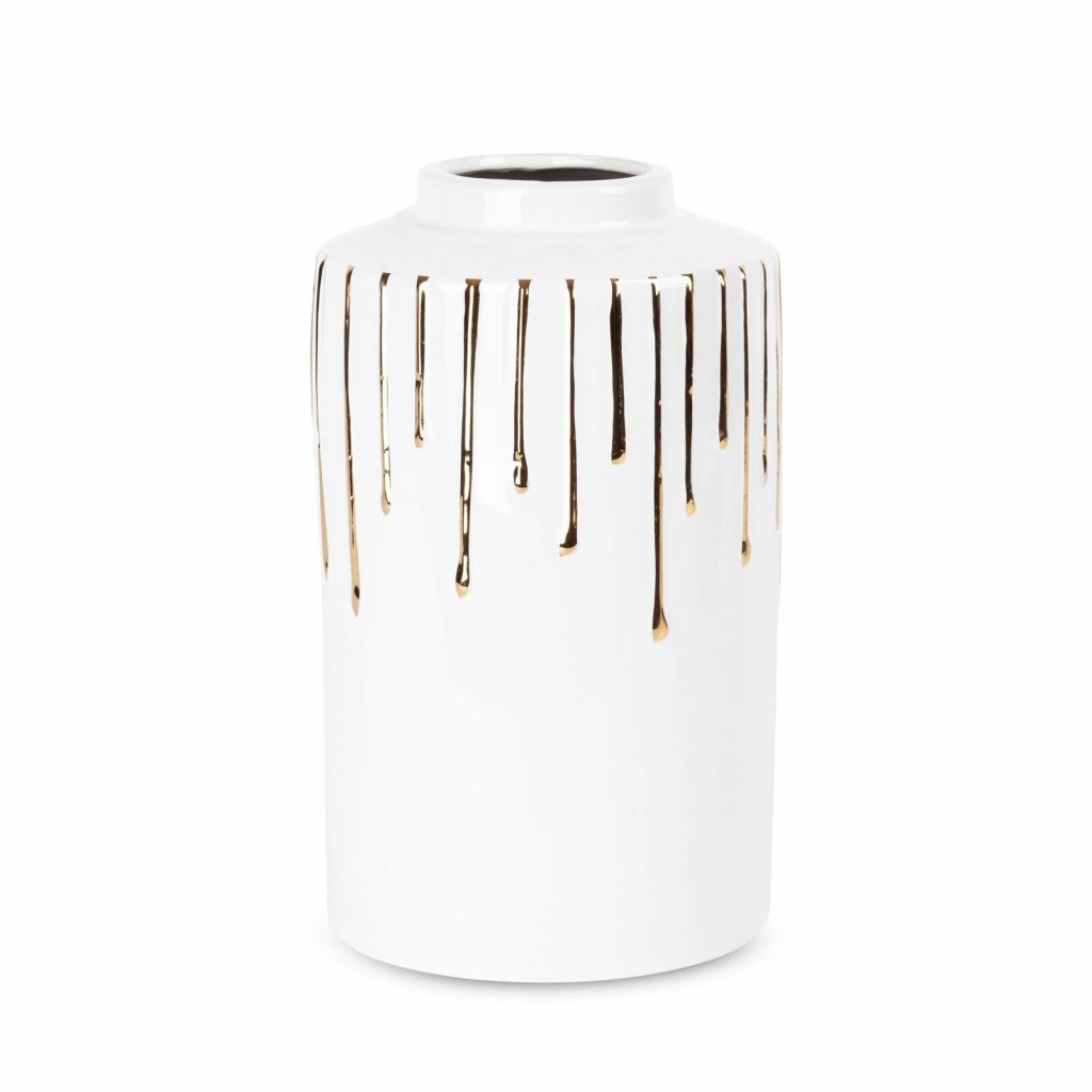 Dekorativní váza šířka: (fi) 15 cm, délka: 25 cm, barva: bílá/zlatá, složení: keramická hlínaDoplňkové parametry