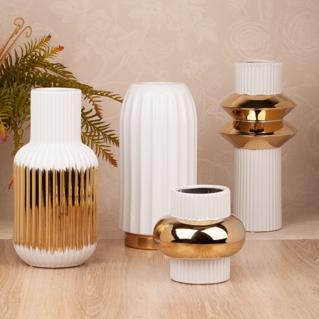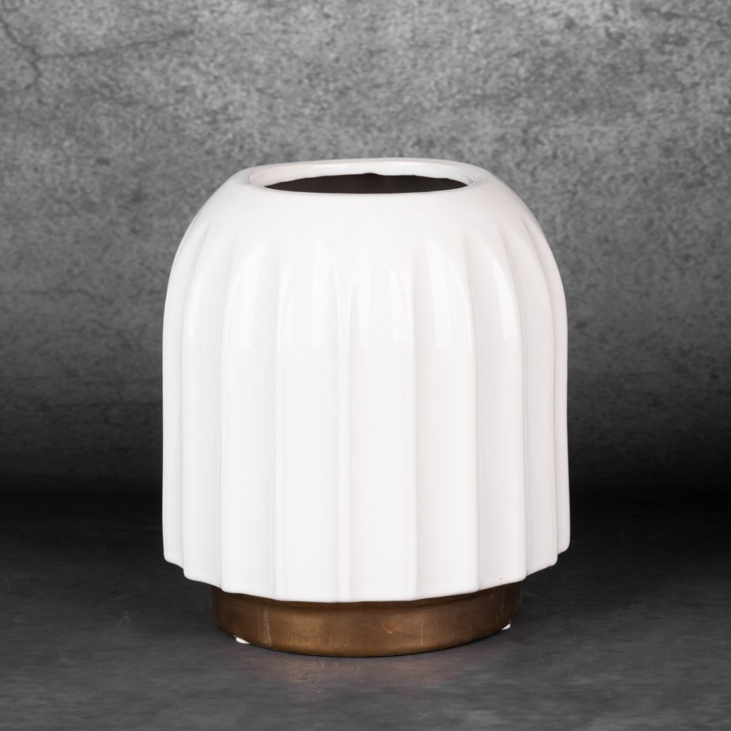 Dekorativní váza šířka: (fi) 20 cm, délka: 22 cm, barva: bílá/zlatá, složení: keramická hlínaDoplňkové parametry