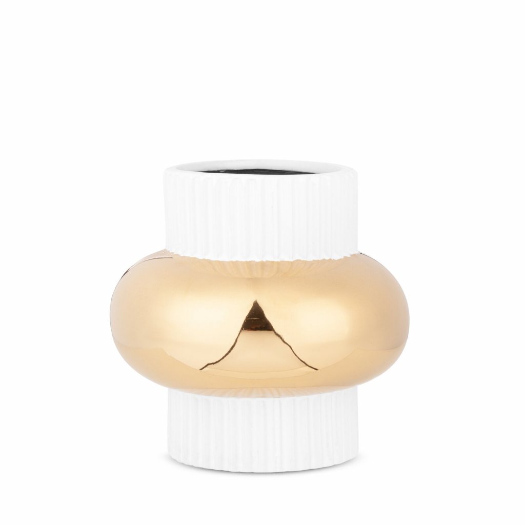 Dekorativní váza šířka: (fi) 16 cm, délka: 16 cm, barva: bílá/zlatá, složení: keramická hlínaDoplňkové parametry