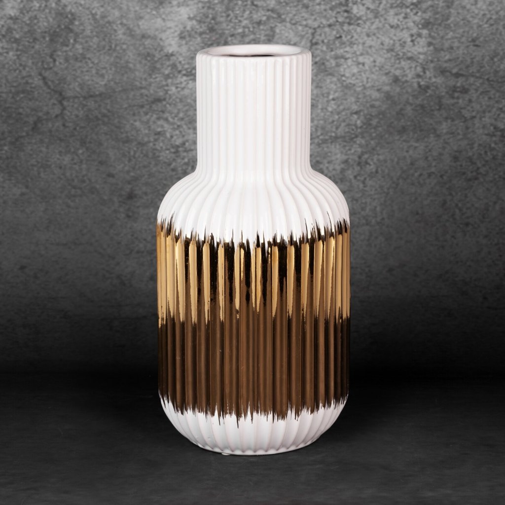 Dekorativní váza šířka: (fi) 16 cm, délka: 32 cm, barva: bílá/zlatá, složení: keramická hlínaDoplňkové parametry