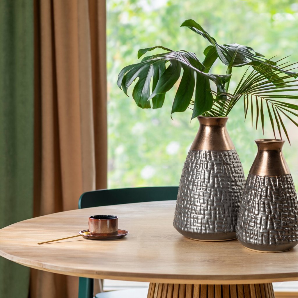 Dekorativní váza šířka: (fi) 13 cm, délka: 20 cm, barva: hnědá, složení: keramická hlína.Doplňkové parametry