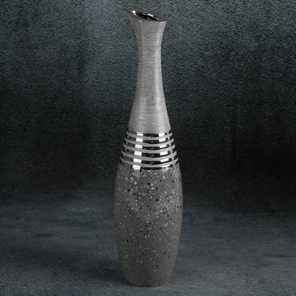 Dekorativní váza šířka: (fi) 15 cm, délka: 60 cm, barva: stříbrná, složení: keramická hlína.Doplňkové parametry
