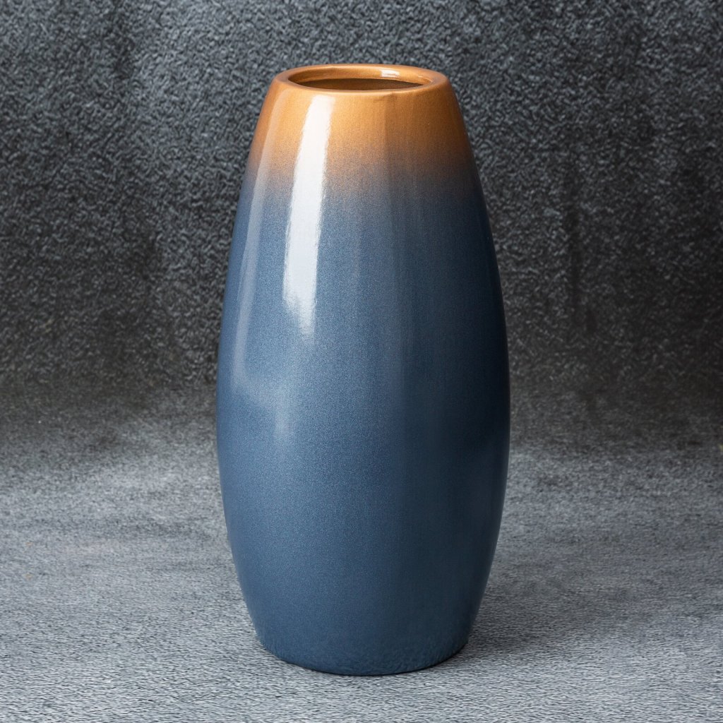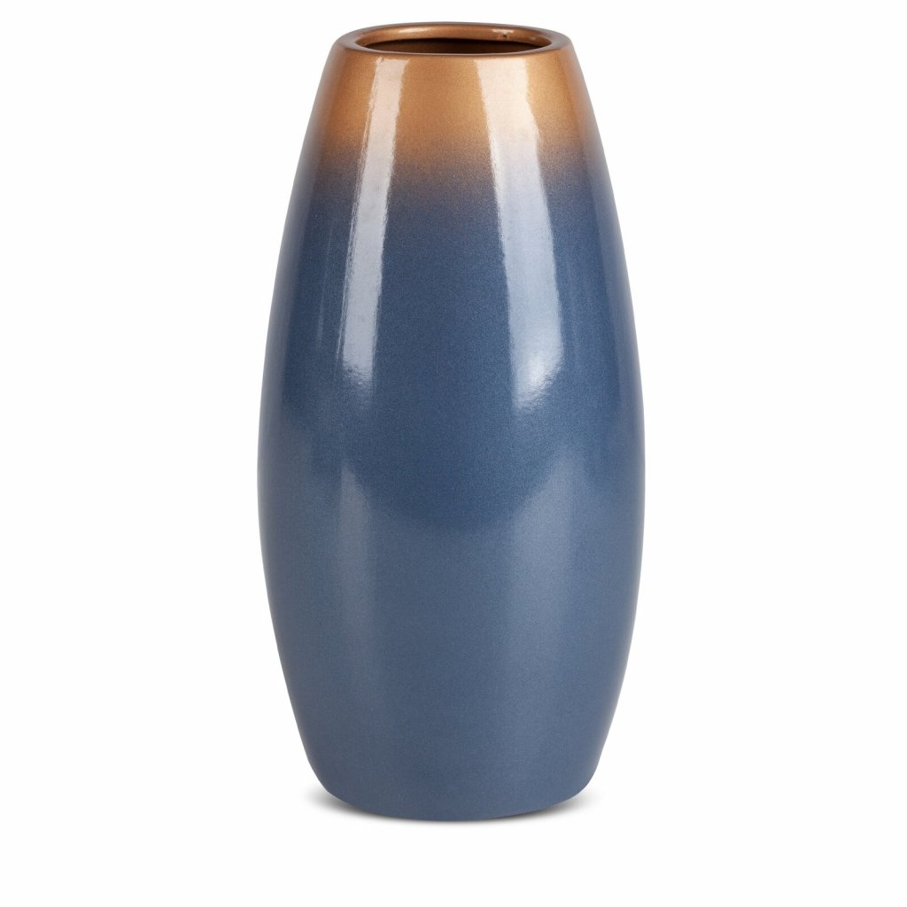 Dekorativní váza šířka: (fi) 15 cm, délka: 30 cm, barva: modrá/zlatá, složení: keramická hlínaDoplňkové parametry