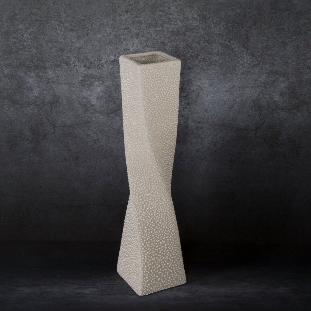 Dekorativní váza z kolekce RISO. Šířka: 9 cm, tloušťka: 9 cm, délka: 39 cm barva: krémová, složení: keramická hlína.Doplňkové parametry