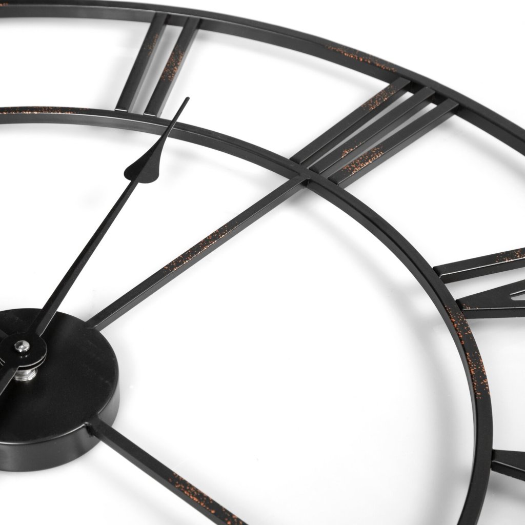 Dekorativní nástěnné hodiny šířka: 70 cm, tloušťka: 5 cm, barva: černá, složení: železo + MDF + sklo, napájení: BATERIE 1 x AADoplňkové parametry