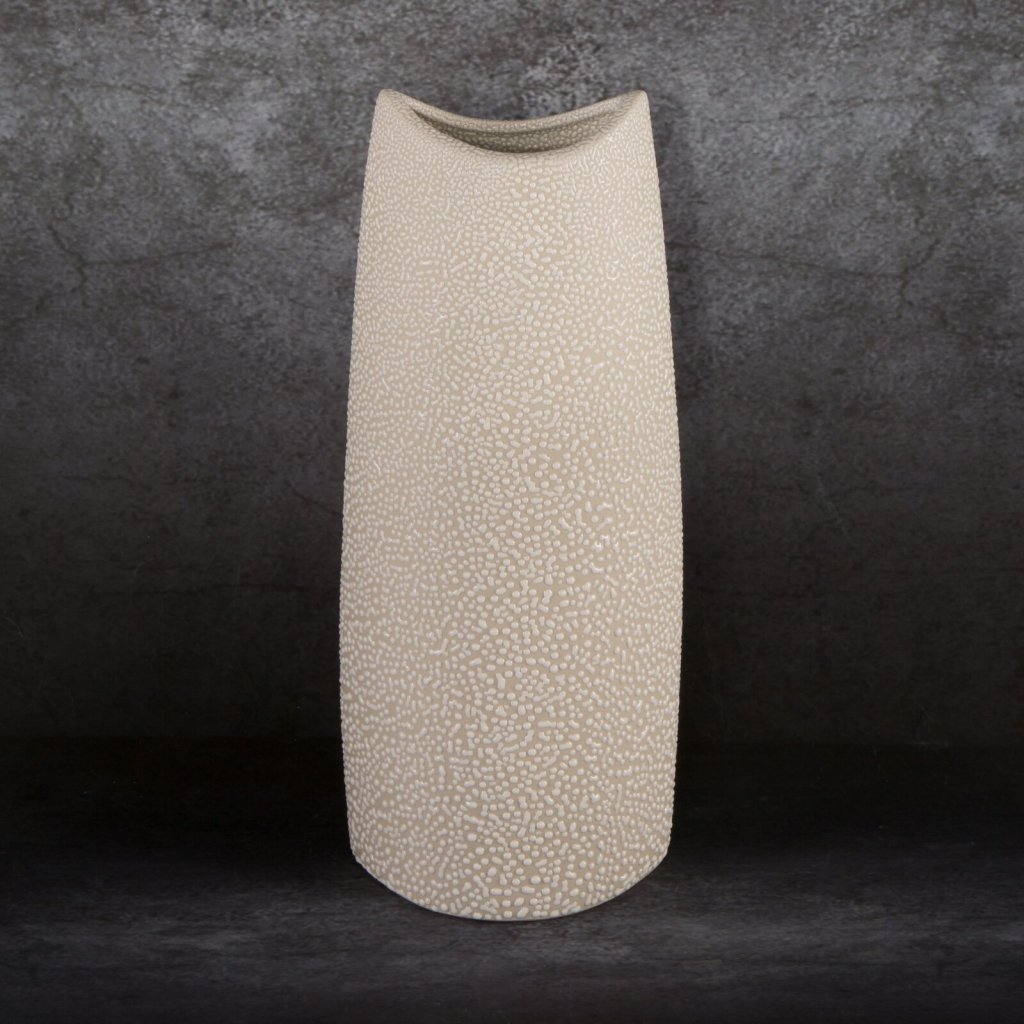 Dekorativní váza z kolekce RISO. Šířka: 14 cm, tloušťka: 9 cm, délka: 35 cm barva: krémová, složení: keramická hlína.Doplňkové parametry