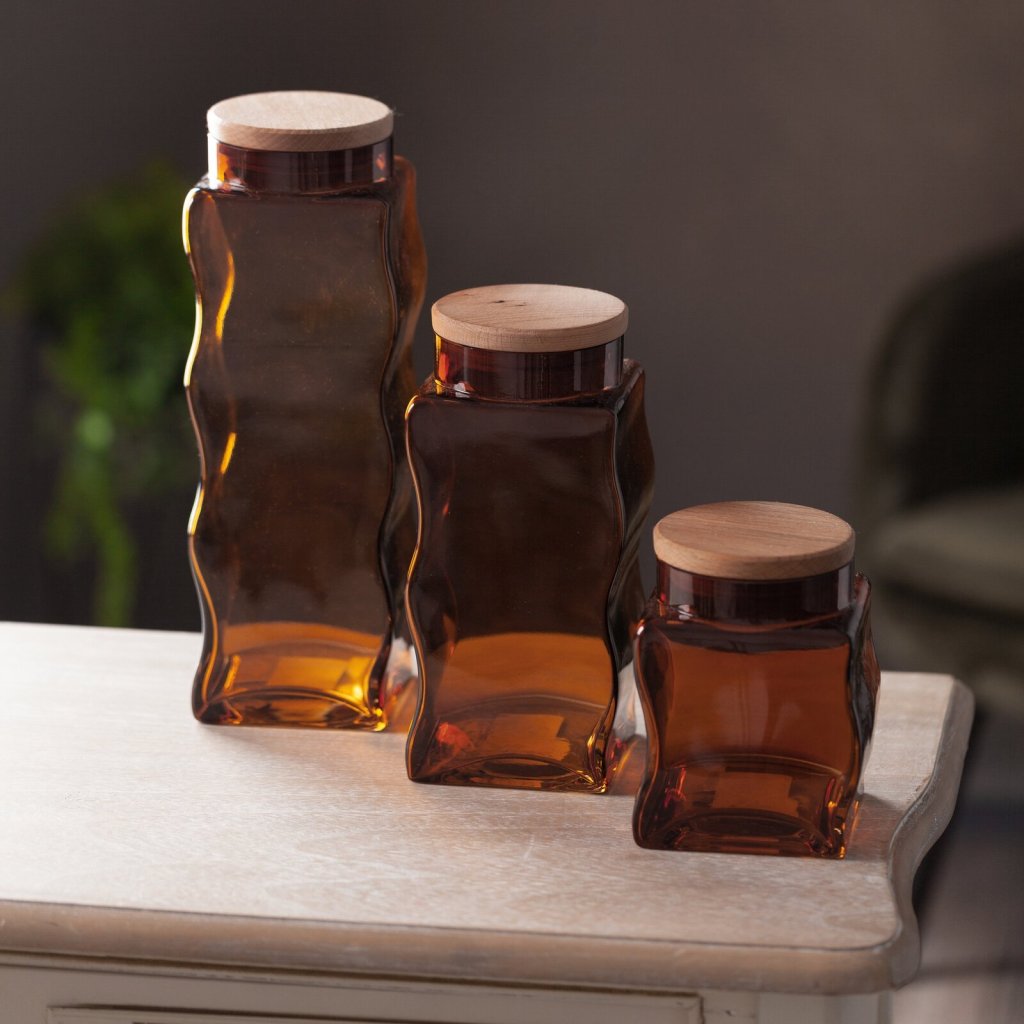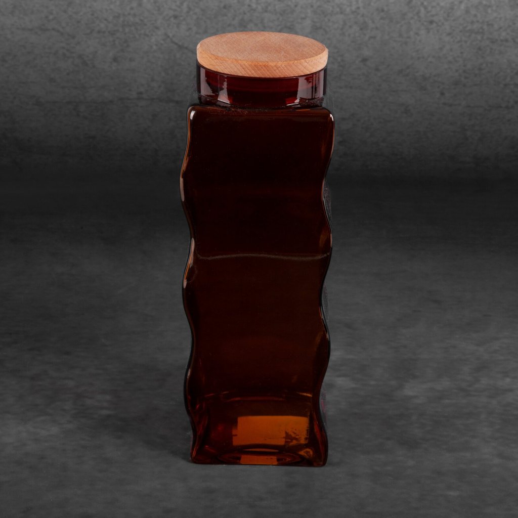 Dekorativní nádoba šířka: 10 cm, délka: 10 cm, barva: zlatá, Složení: 100% sklo. Skleněná dóza s bambusovým víčkem má pod víčkem silikonové těsnění.Doplňkové parametry