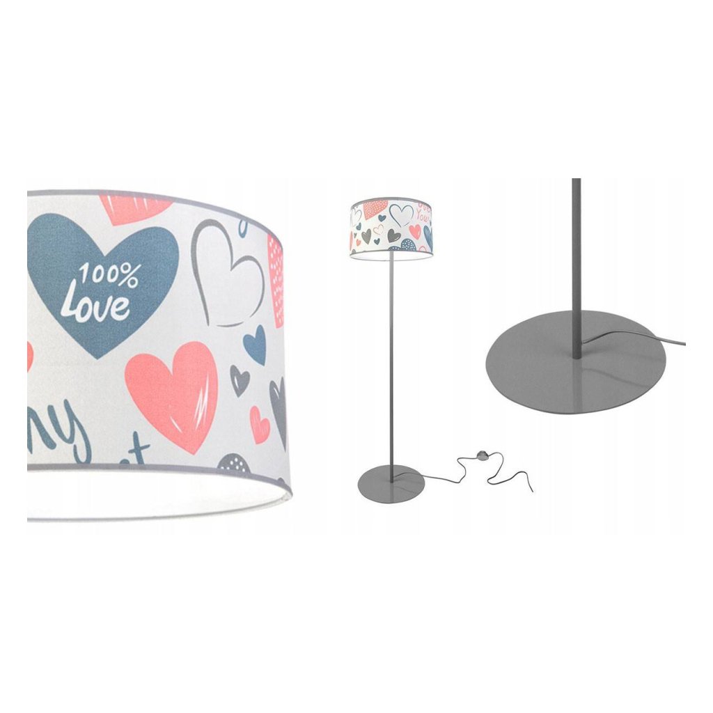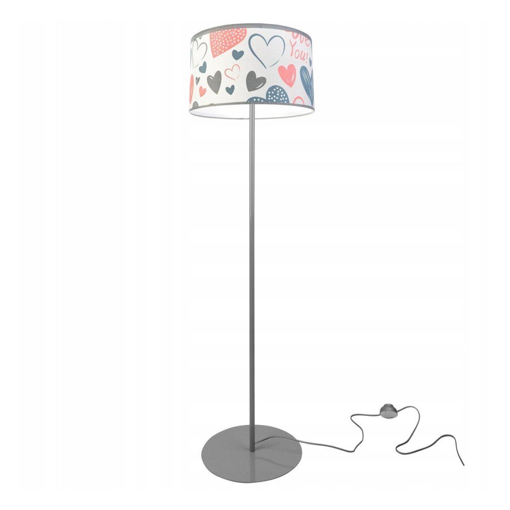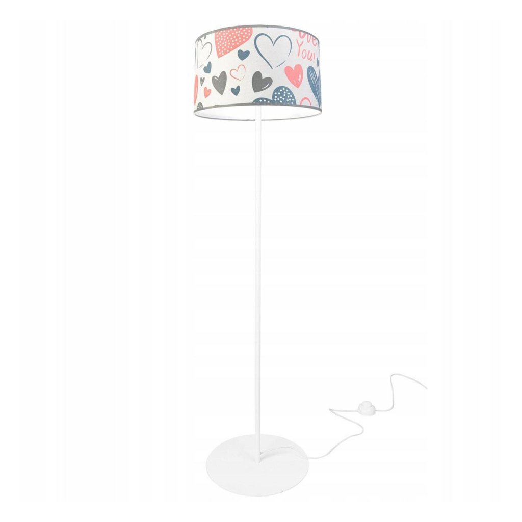 Dětská stojací lampa Heart, 1x bílé textilní stínítko se vzorem, (výběr ze 2 barev konstrukce), o, p