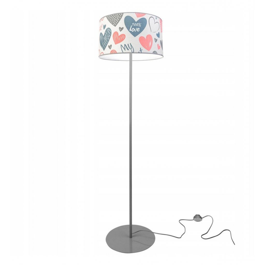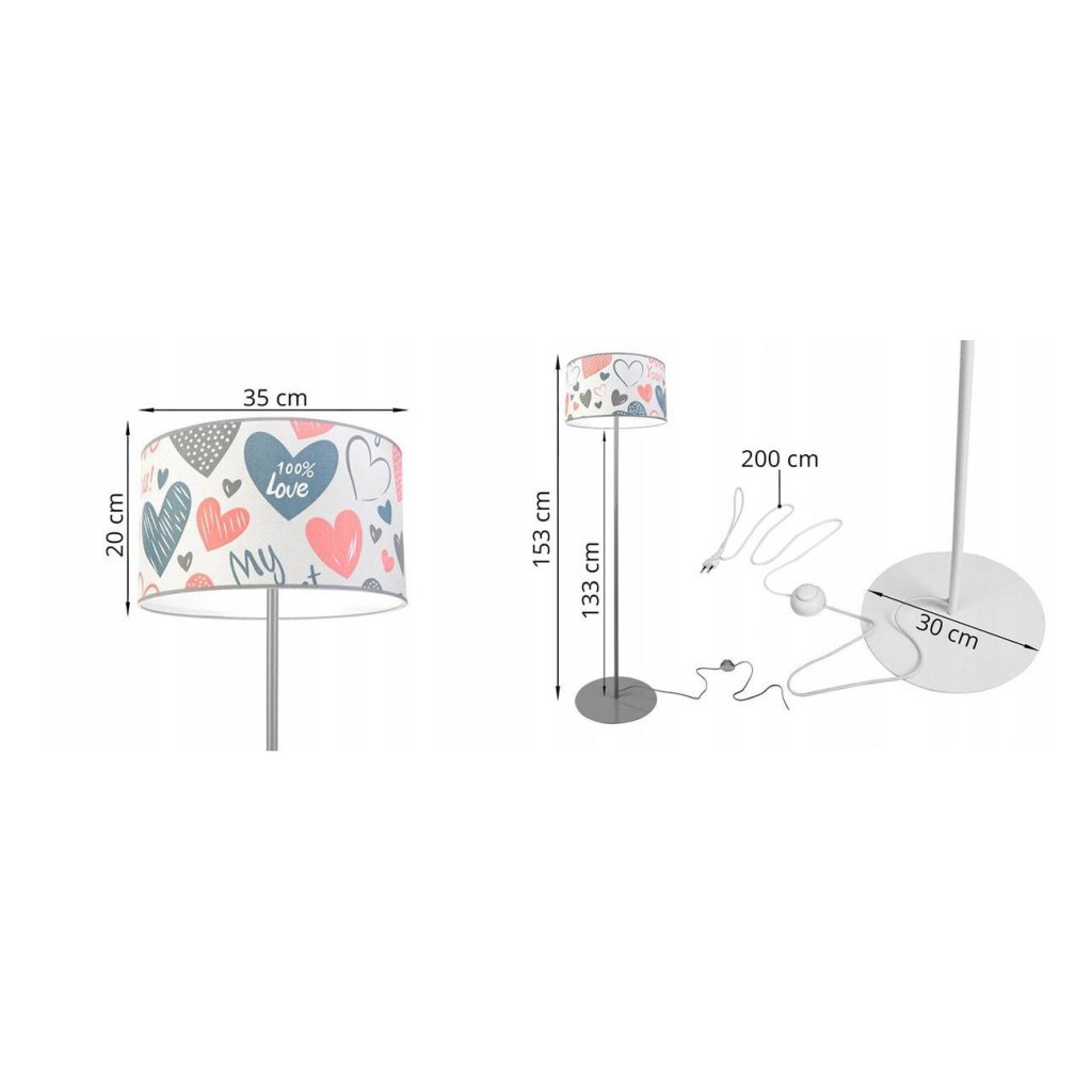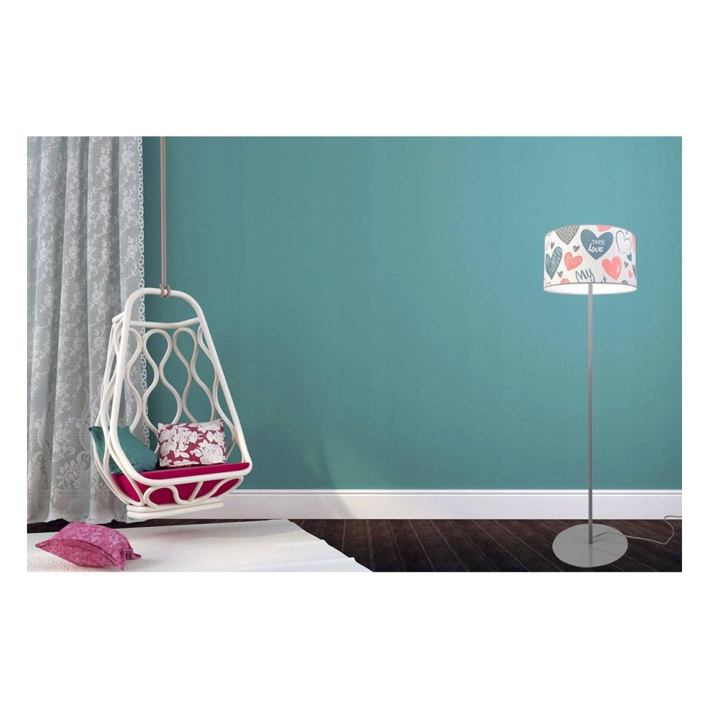 Dětská stojací lampa Heart, 1x bílé textilní stínítko se vzorem, (výběr ze 2 barev konstrukce), o, p