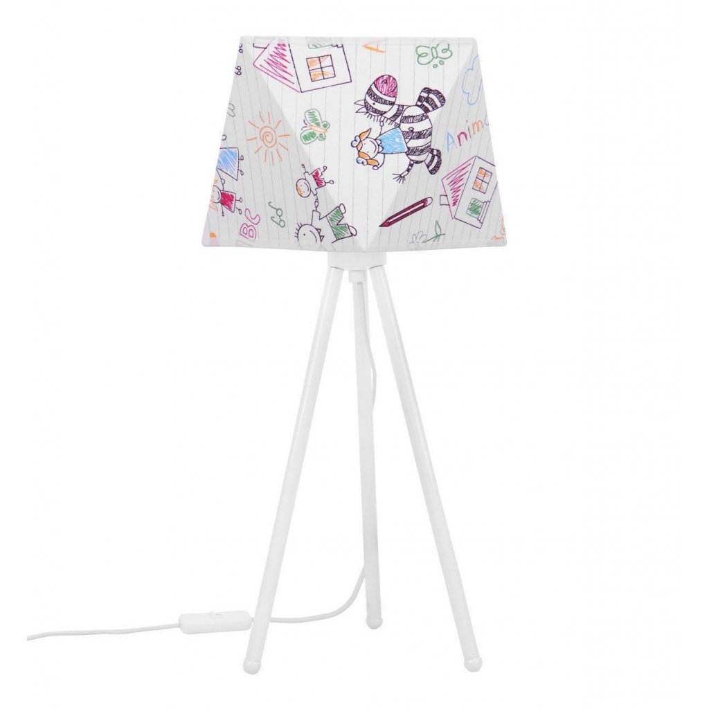 Dětská stolní lampa Diamond, 1x bílé textilní stínítko se vzorem