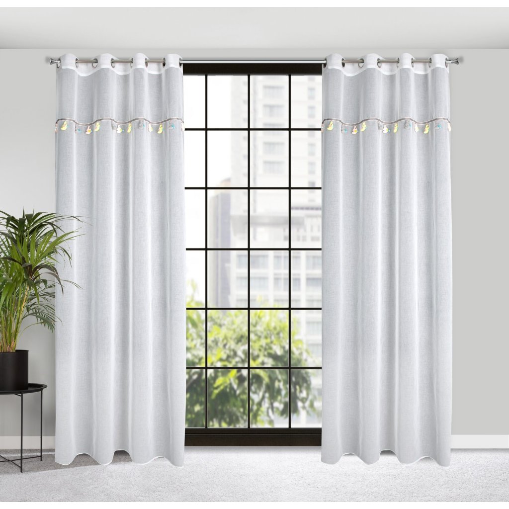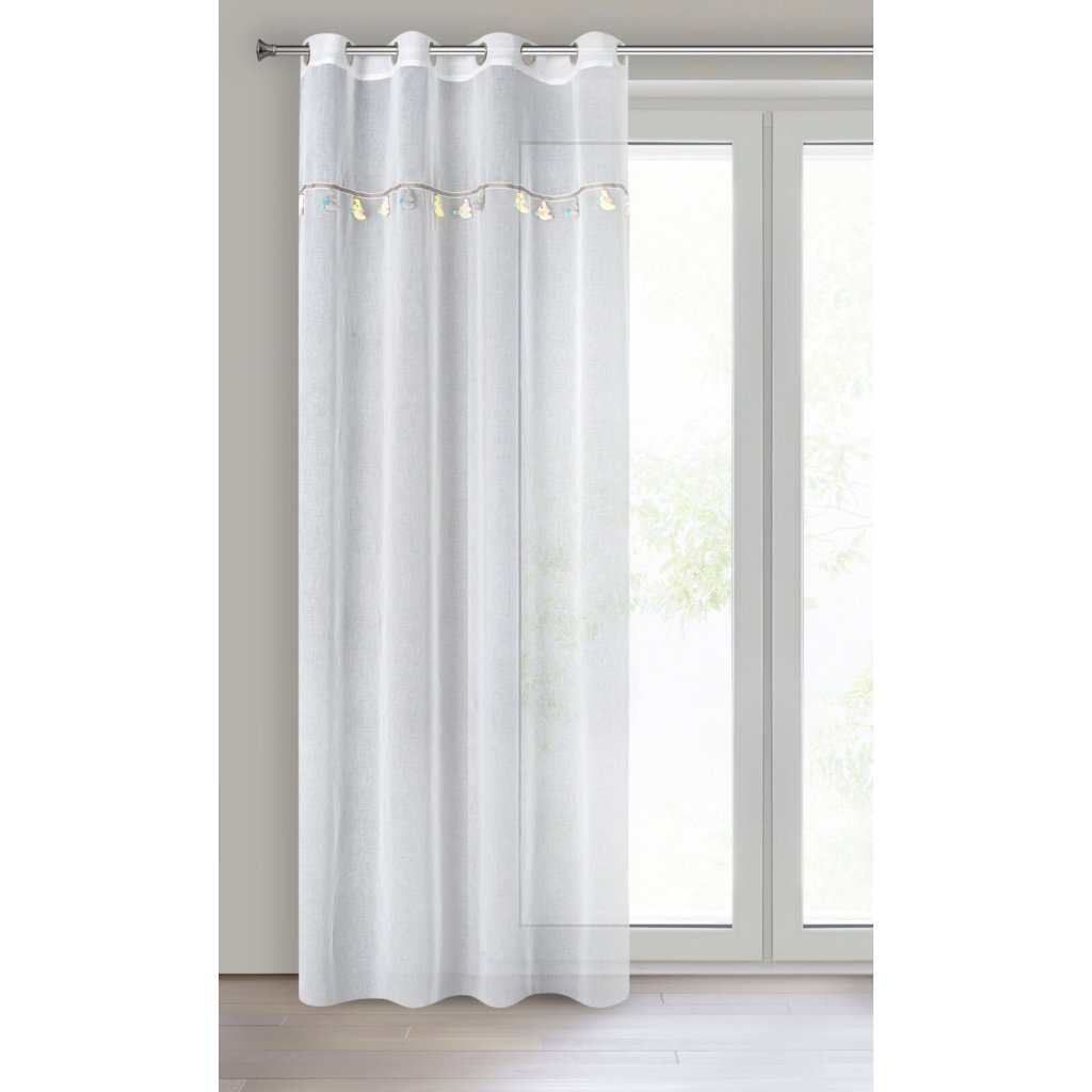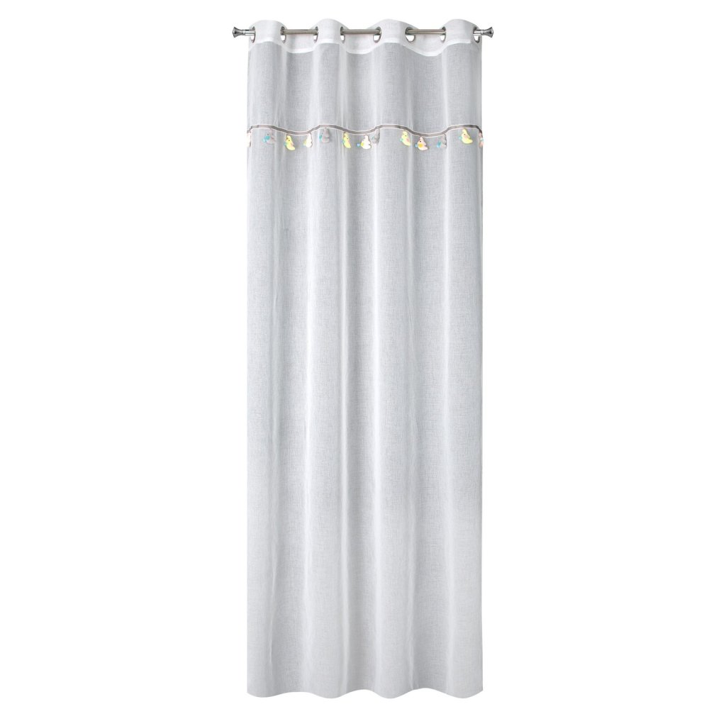 Hotová záclona se všitou ozdobnou páskou s dětským motivem, šířka: 140 cm, délka: 250 cm, barva: bílá, hmotnost: 50 GSM, složení: 100% polyester.Doplňkové parametry