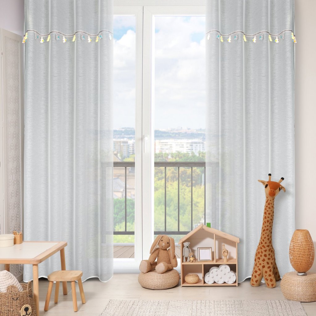 Záclona se všitou ozdobnou páskou s dětským motivem, šířka: 140 cm, délka: 250 cm, barva: krémová, hmotnost: 50 GSM, složení: 100% polyester.Doplňkové parametry