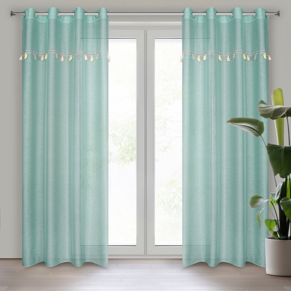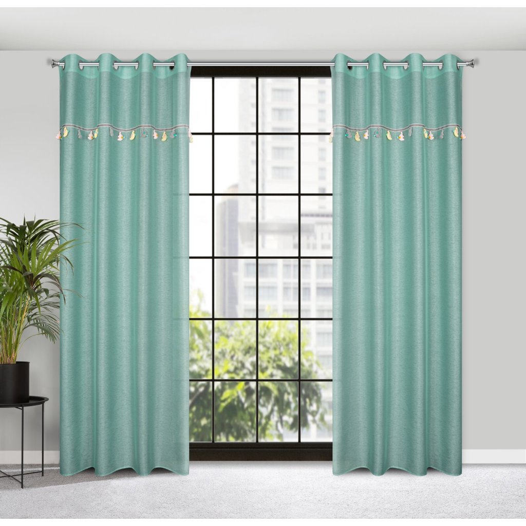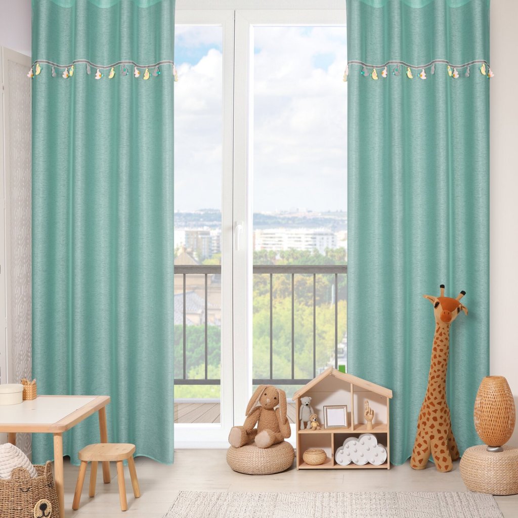 Záclona se všitou ozdobnou páskou s dětským motivem, šířka: 140 cm, délka: 250 cm, barva: mentolová, hmotnost: 50 GSM, složení: 100% polyester.Doplňkové parametry