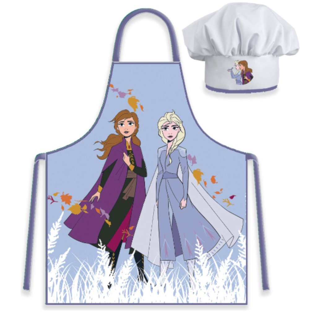 Sada kuchyňské zástěry a kuchařské čepice s potiskem FROZEN. Zástěra z nepromokavého a pevného polyesteru s praktickou dětskou čepicí. Sada se vyznačuje trvalou intenzitou barev a snadným odstraňováním nečistot. Materiál: 100% polyester. Velikost zástěry: 45 cm x 50 cm. Šířka čepice: 2x 33 cm. Praní: 30 °C. Balení: plastový sáček.Doplňkové parametry