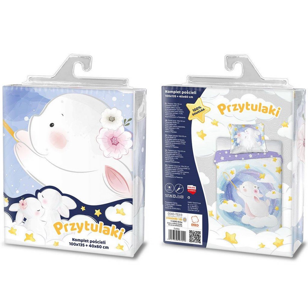 DĚTSKÉ BAVLNĚNÉ LOŽNÍ POVLEČENÍ BUNNY 100X135 CM, 1 KS 40X60 CM VZOROVANÉ
