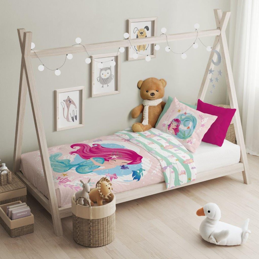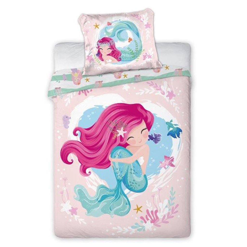 DĚTSKÉ BAVLNĚNÉ POVLEČENÍ MERMAID 100X135 CM, 1KS 40X60 CM VZOROVANÉ