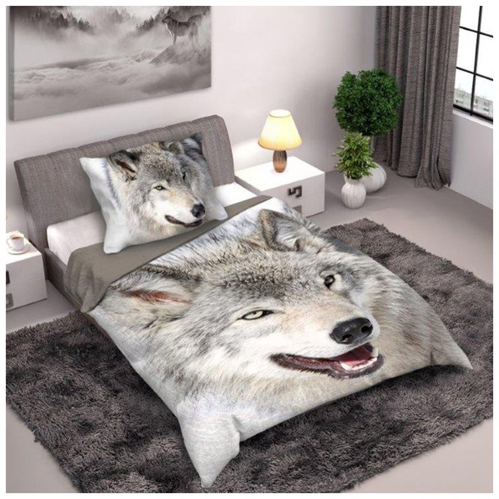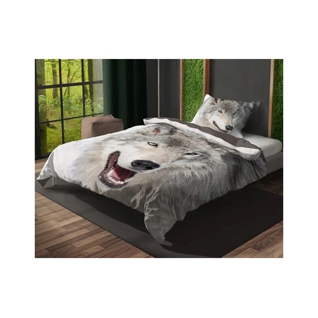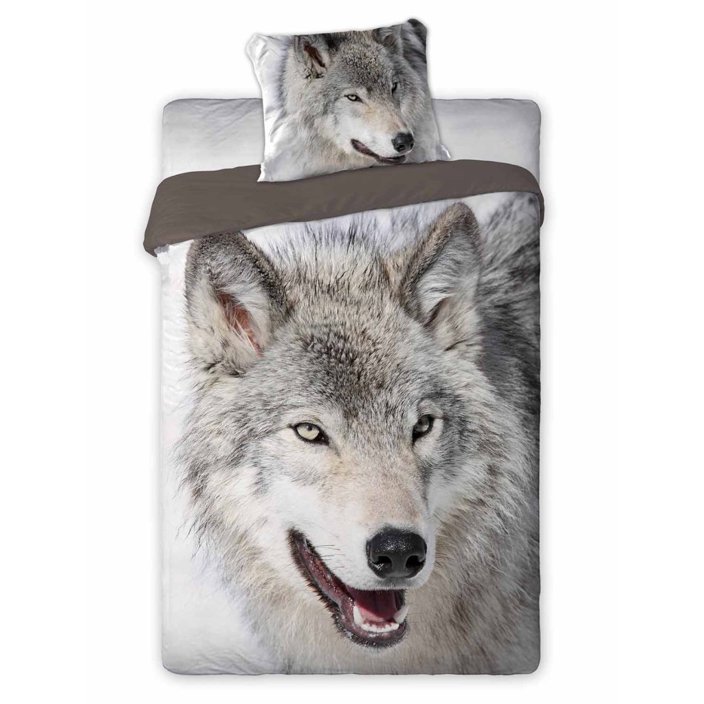 Bavlněné dvoudílné ložní prádlo s potiskem Wolf. Materiál: 100% bavlna. Hmotnost: 105 g/m2. Rozměry: 160x200+1x 70x80 cm. Zapínání: zip. Praní: 40 °C. Barvy na obrázcích se mohou mírně lišit od skutečnosti.Doplňkové parametry
