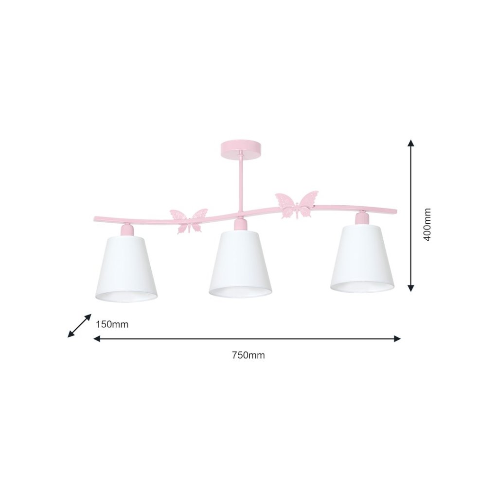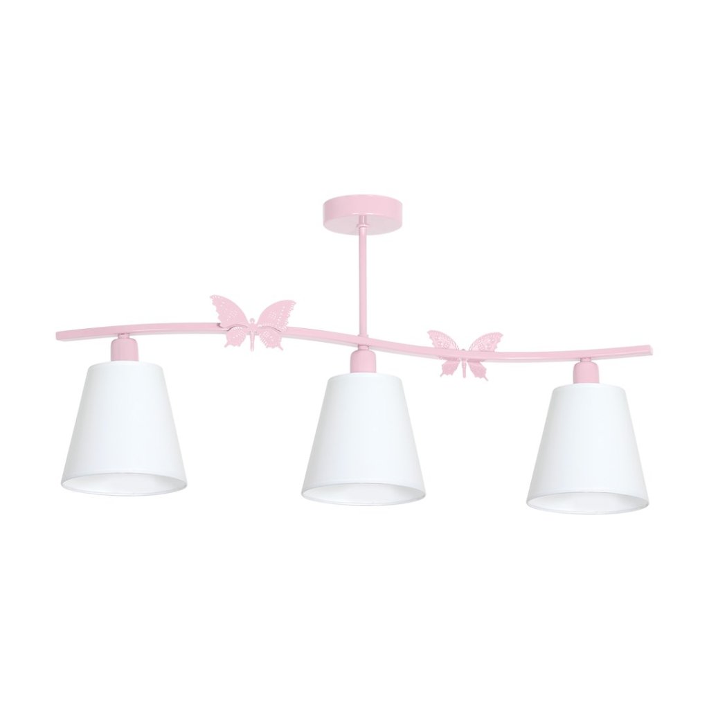 Estetická zdobení ve tvaru motýlů dodávají svítidlu jemnost a výtvarný nádech. Tento dekorativní detail je charakteristický pro celou kolekci Alice Pink, která zahrnuje také nástěnná svítidla, závěsné lustry a víceramenné modely, čímž umožňuje vytvořit stylově jednotný osvětlovací koncept v celém dětském pokoji.