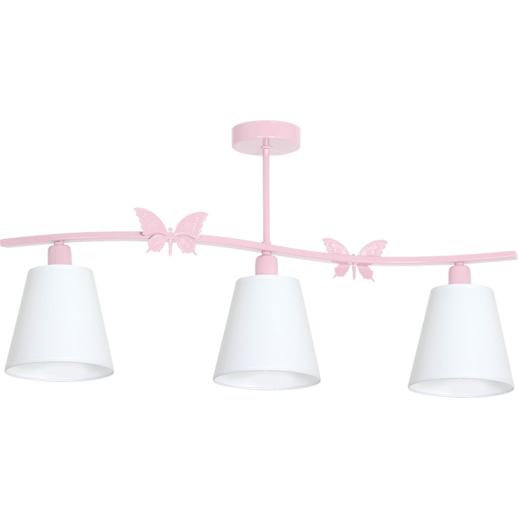 Dětské stropní svítidlo z kolekce Alice se třemi bílými textilními stínítky a pudrově růžovou konstrukcí je ideálním osvětlením do dětského pokoje zařízeného v tradičním nebo romantickém stylu. Jemné barvy a klasické linie svítidla vytváří harmonické a útulné prostředí, které podporuje klid a pohodu.