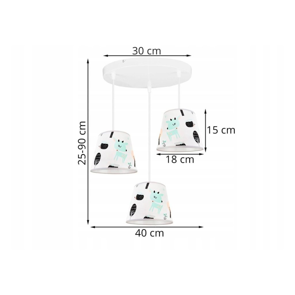Dětské závěsné svítidlo Bambi, 3x textilní stínítko se vzorem, o, s