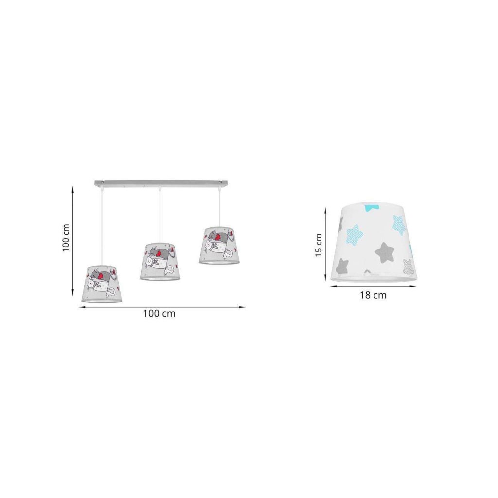 Dětské závěsné svítidlo Cone, 3x textilní stínítko se vzorem (mix 7 vzorů), (výběr ze 2 barev konstrukce)
