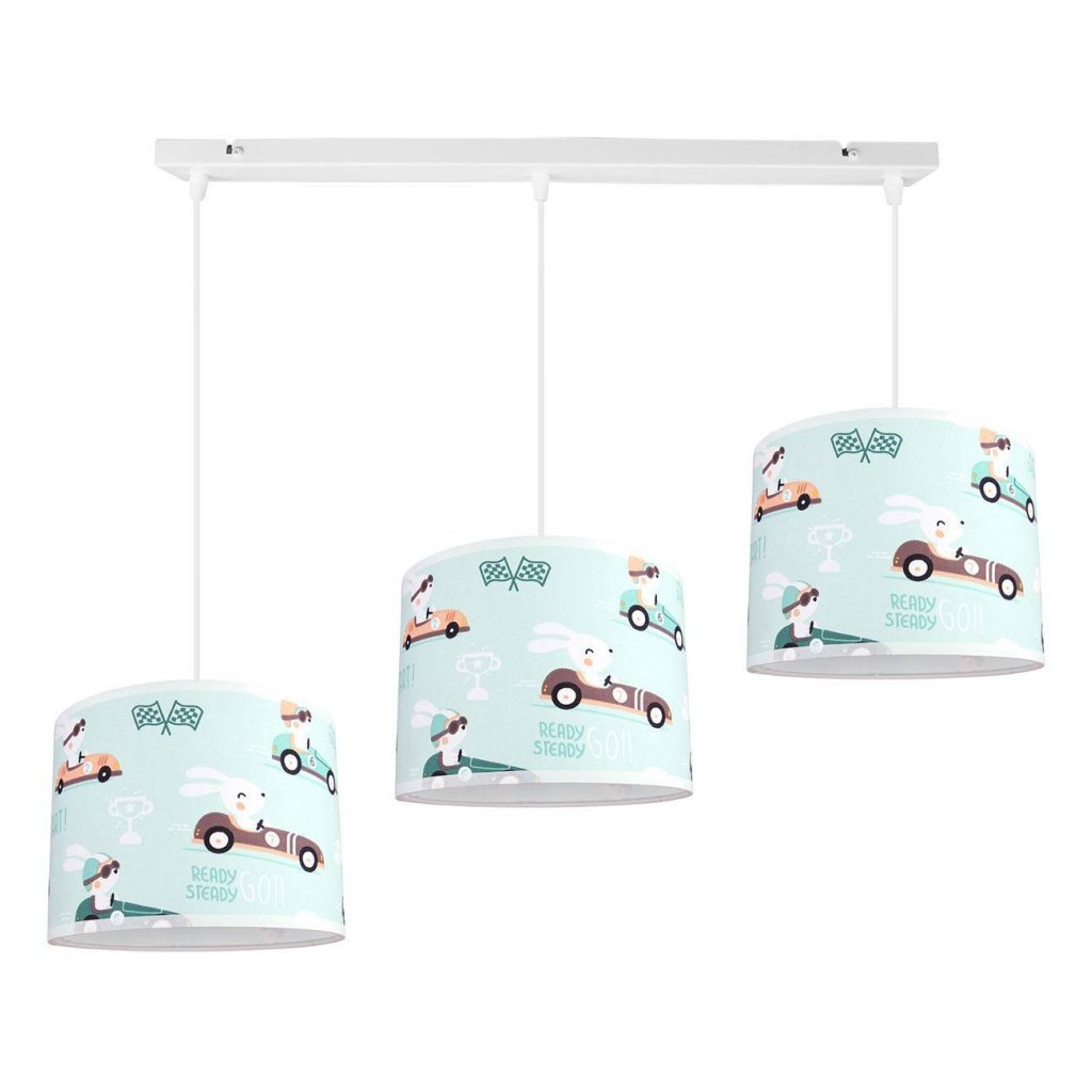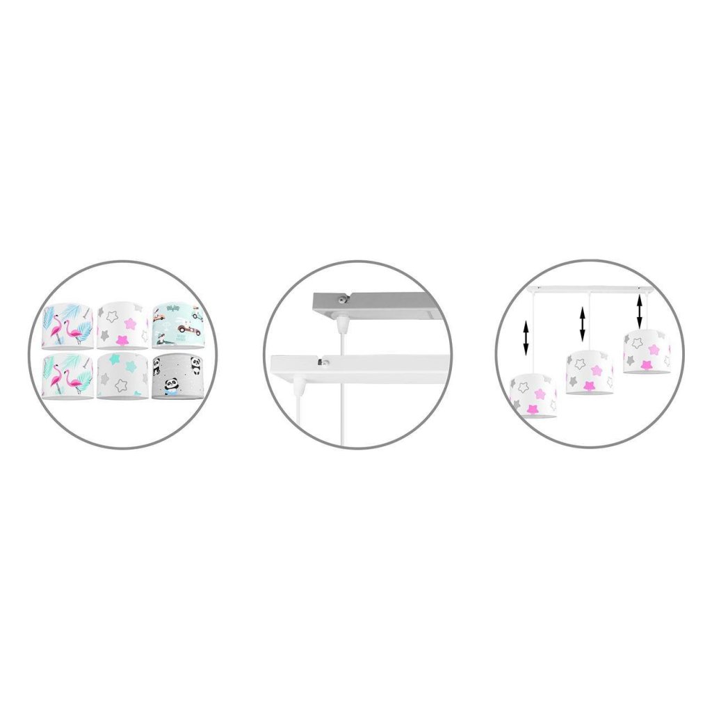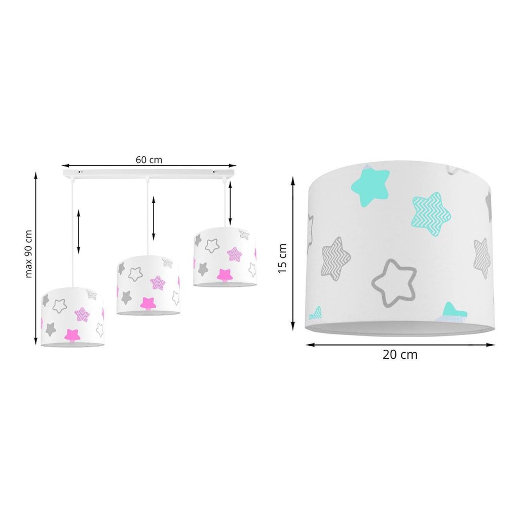 Dětské závěsné svítidlo Cone, 3x textilní stínítko se vzorem (výběr ze 6 barev), (výběr ze 2 barev konstrukce)
