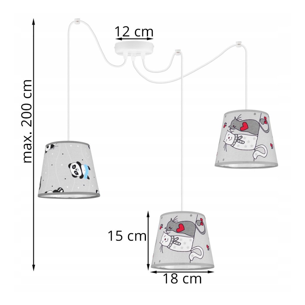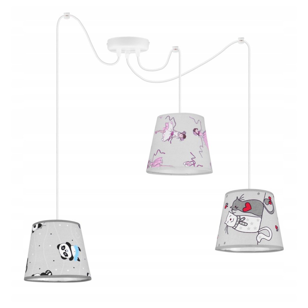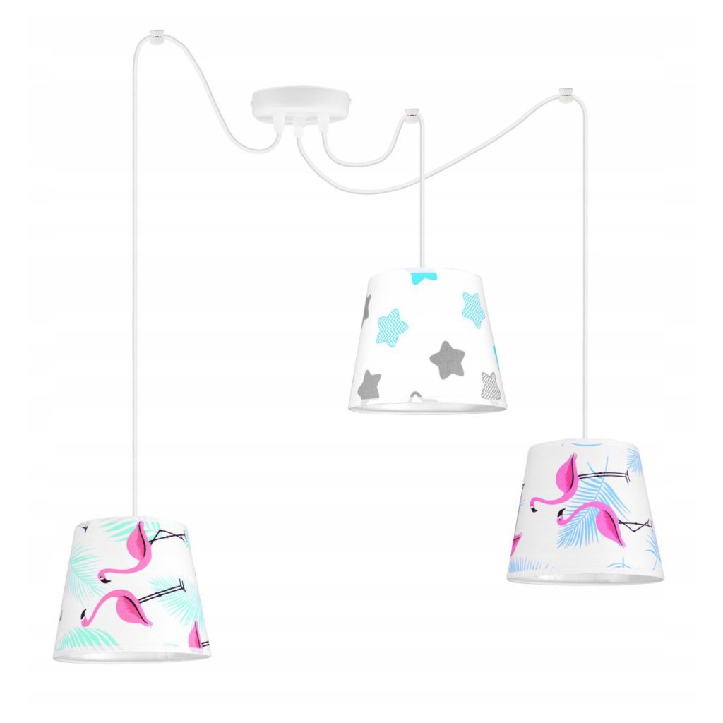 Dětské závěsné svítidlo Cone Spider, 3x textilní stínítko se vzorem (výběr ze 7 barev), w