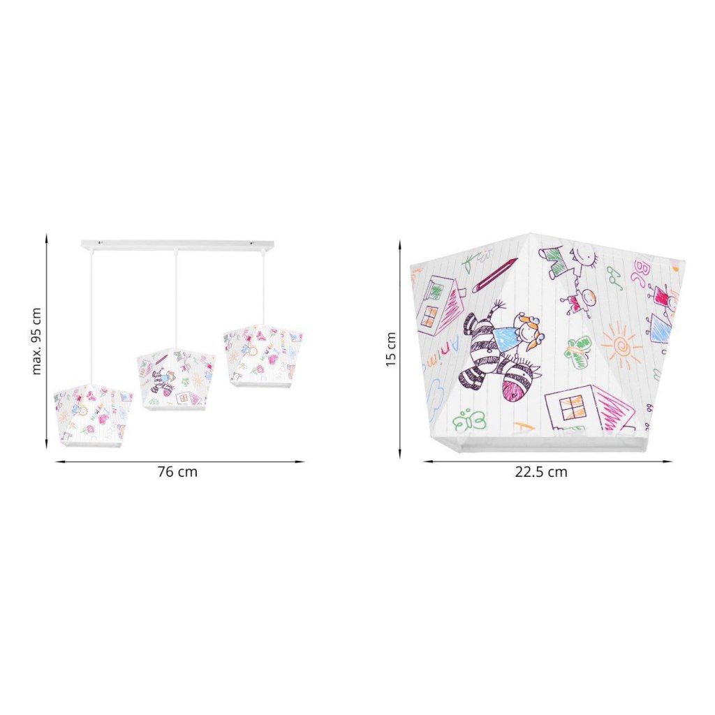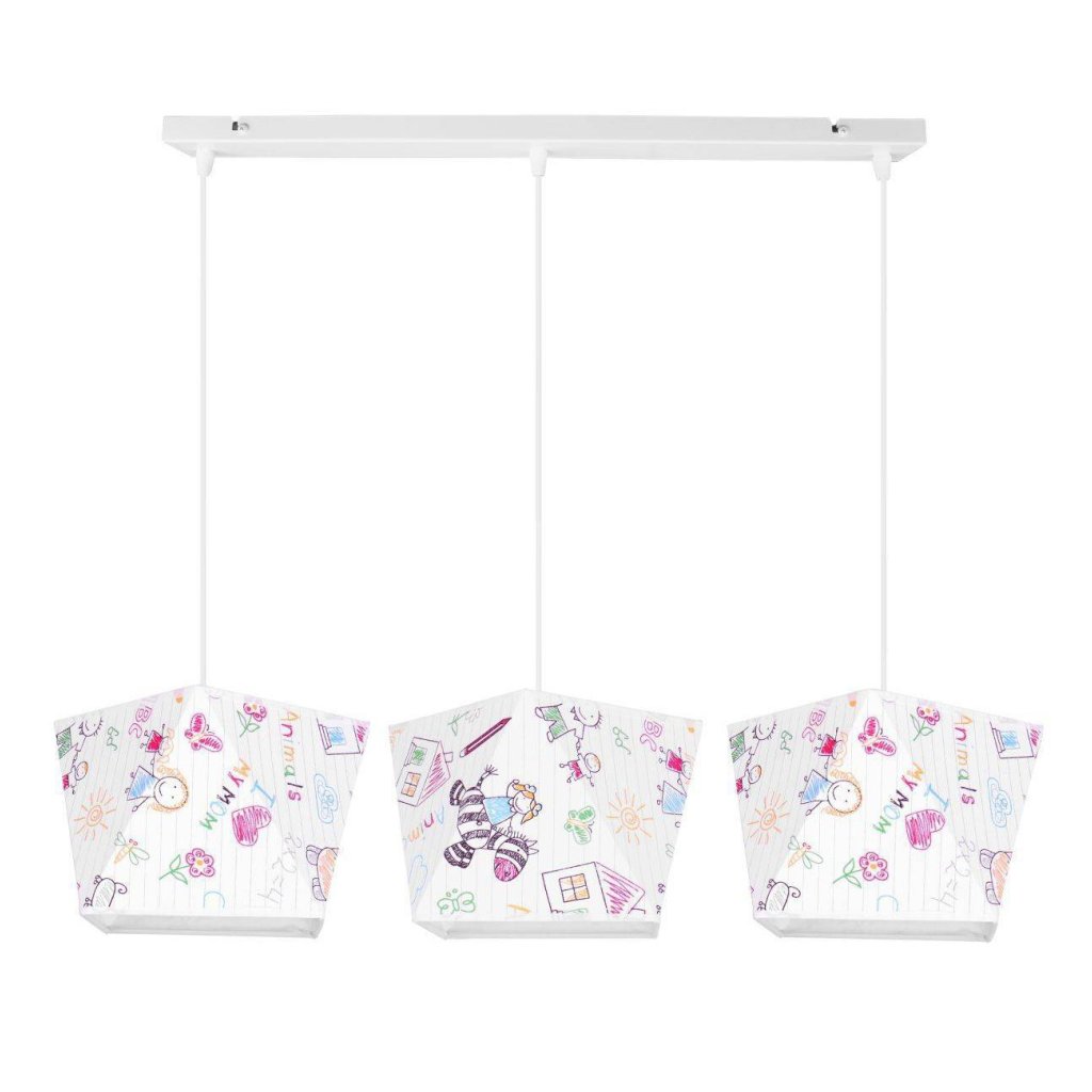 Dětské závěsné svítidlo Diamond, 3x bílé textilní stínítko se vzorem