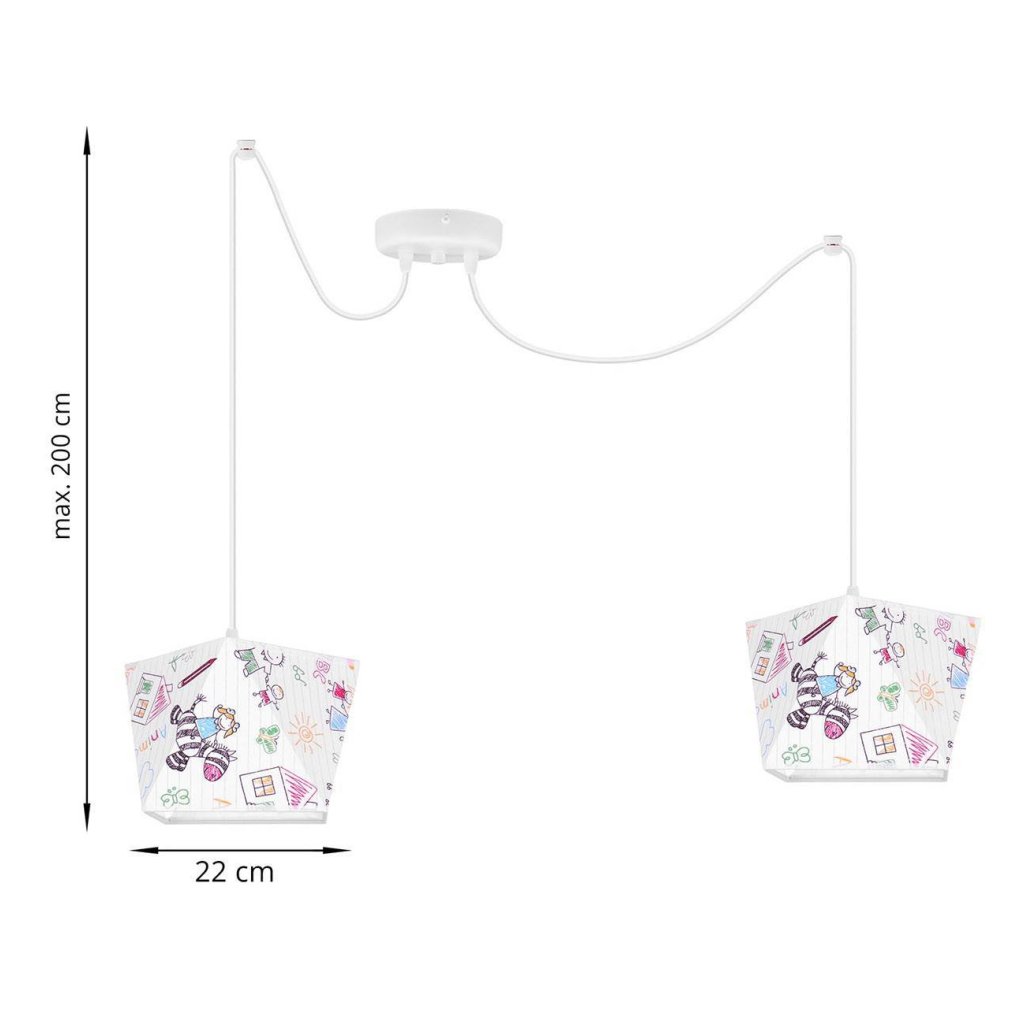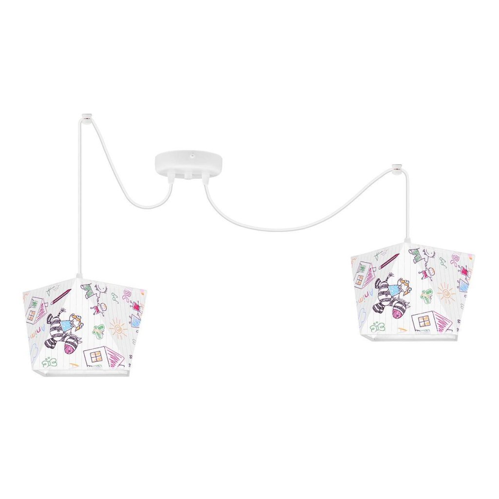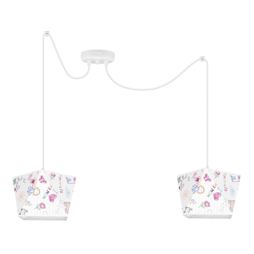 Dětské závěsné svítidlo Diamond Spider, 2x bílé textilní stínítko se vzorem