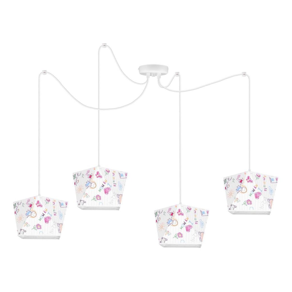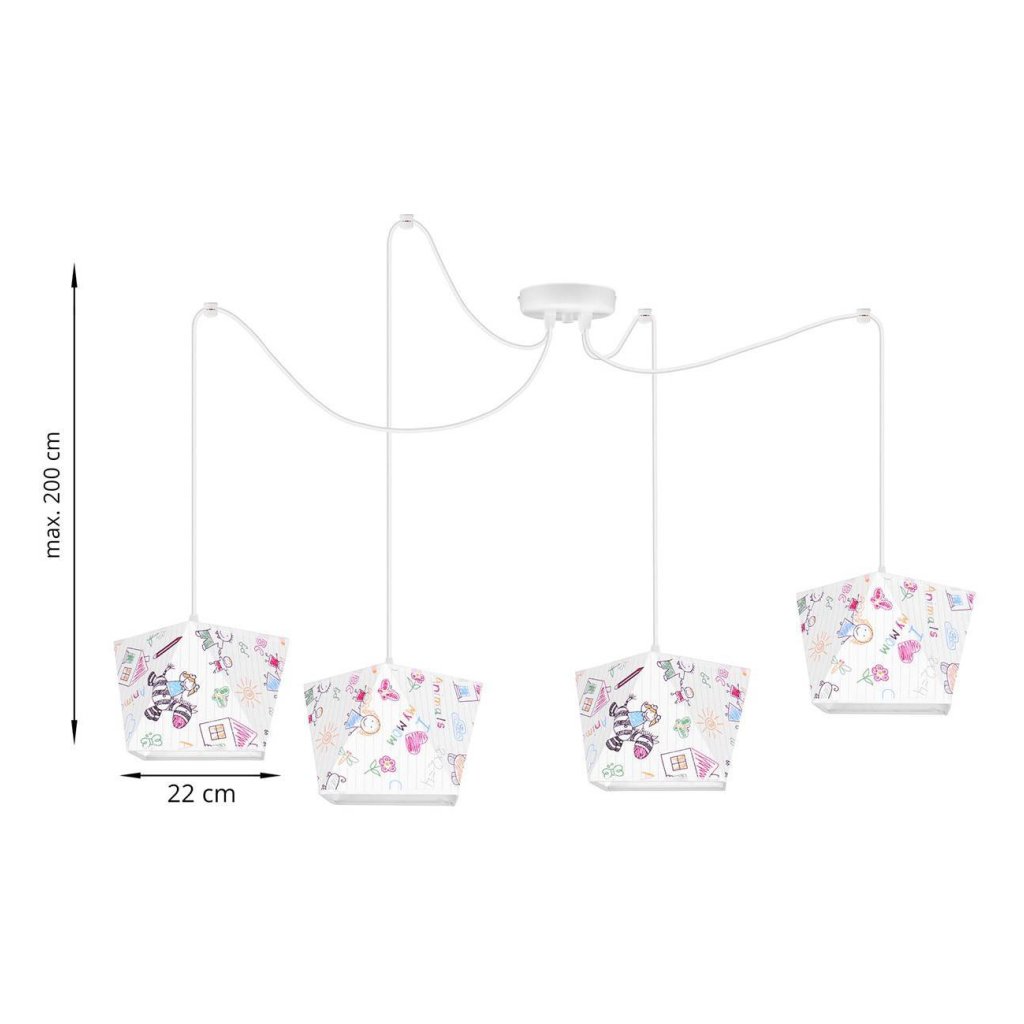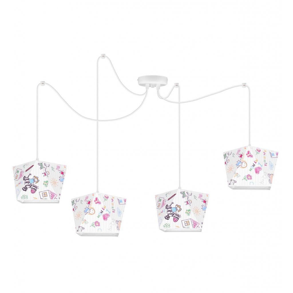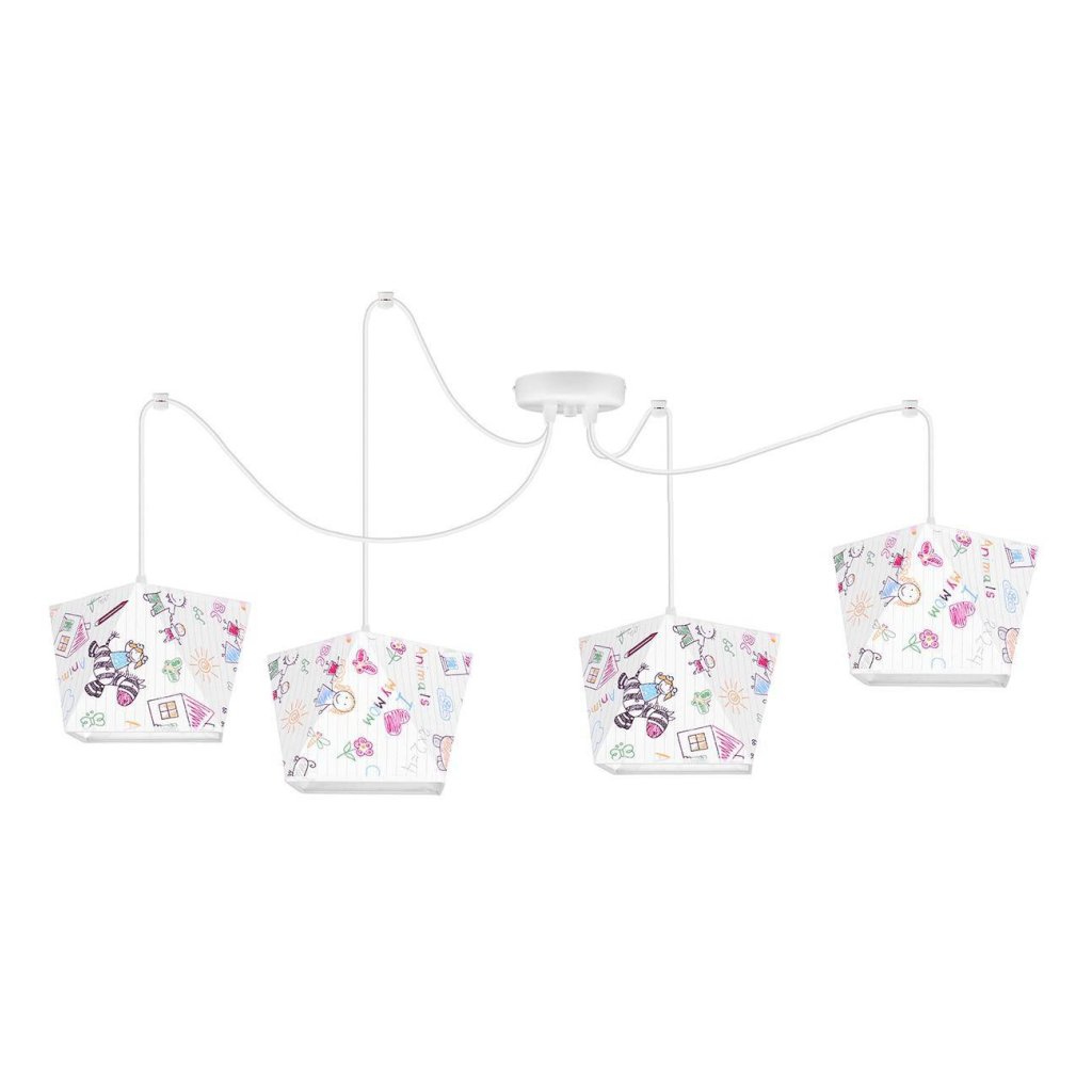 Dětské závěsné svítidlo Diamond Spider, 4x bílé textilní stínítko se vzorem