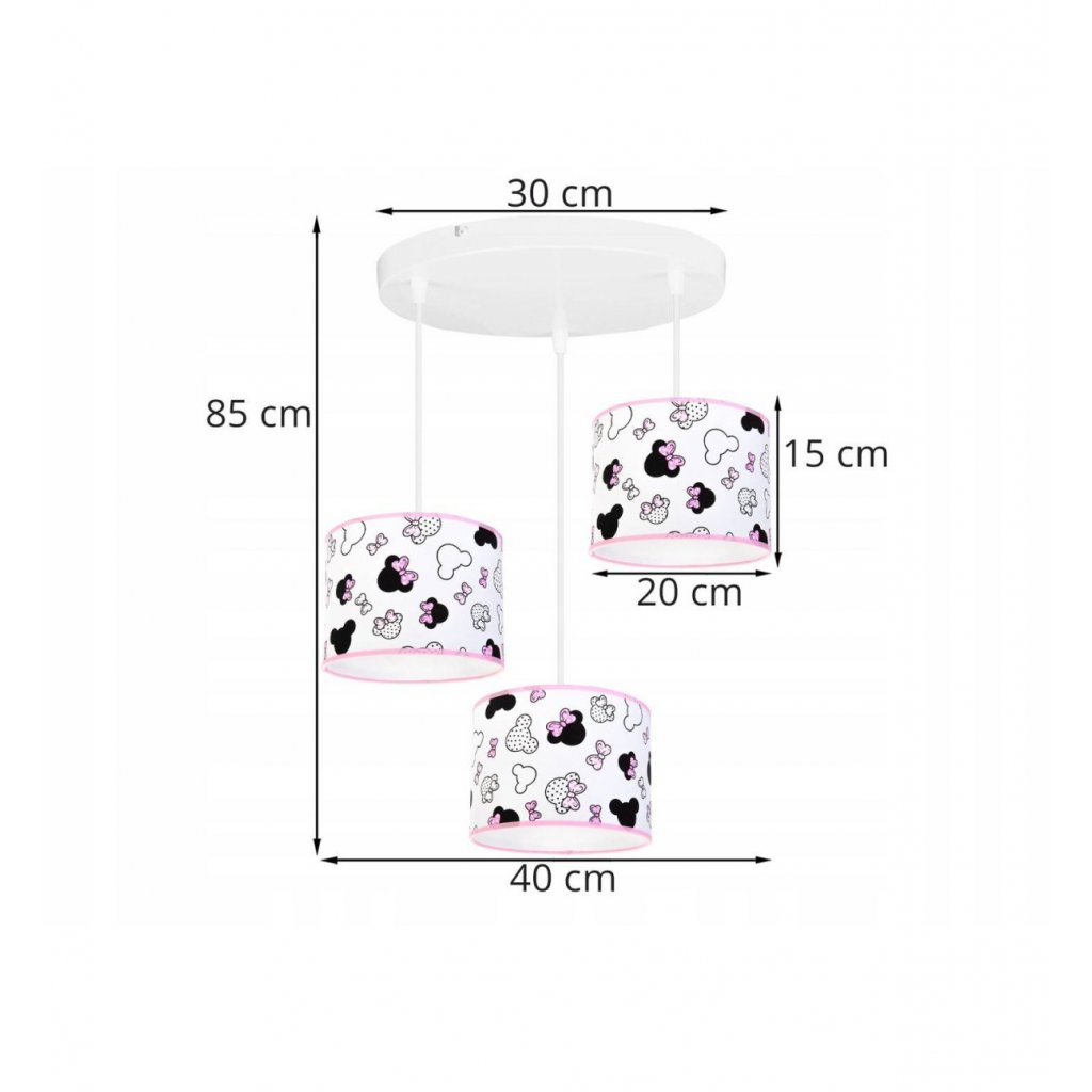 Dětské závěsné svítidlo Minnie, 3x textilní stínítko se vzorem,