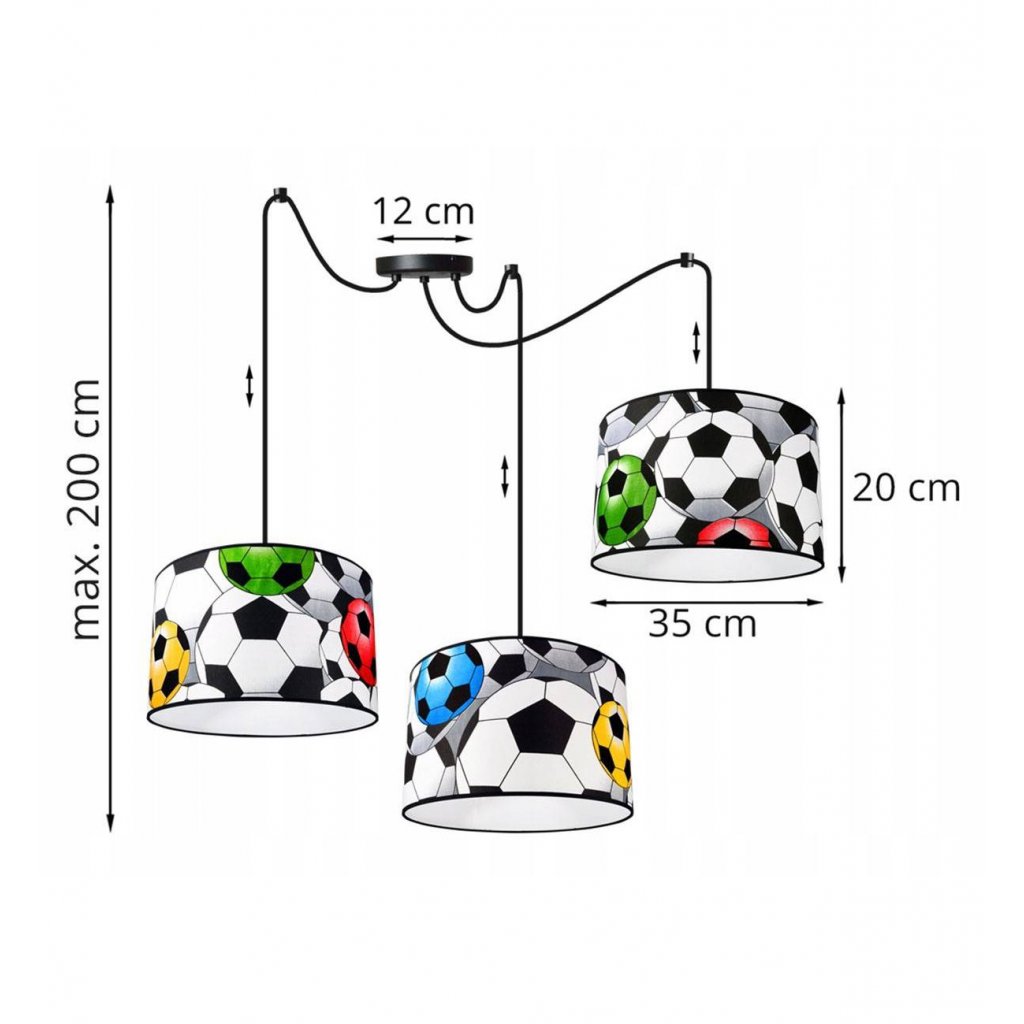 Dětské závěsné svítidlo Soccer Spider, 3x textilní stínítko se vzorem, (výběr ze 2 barev konstrukce)