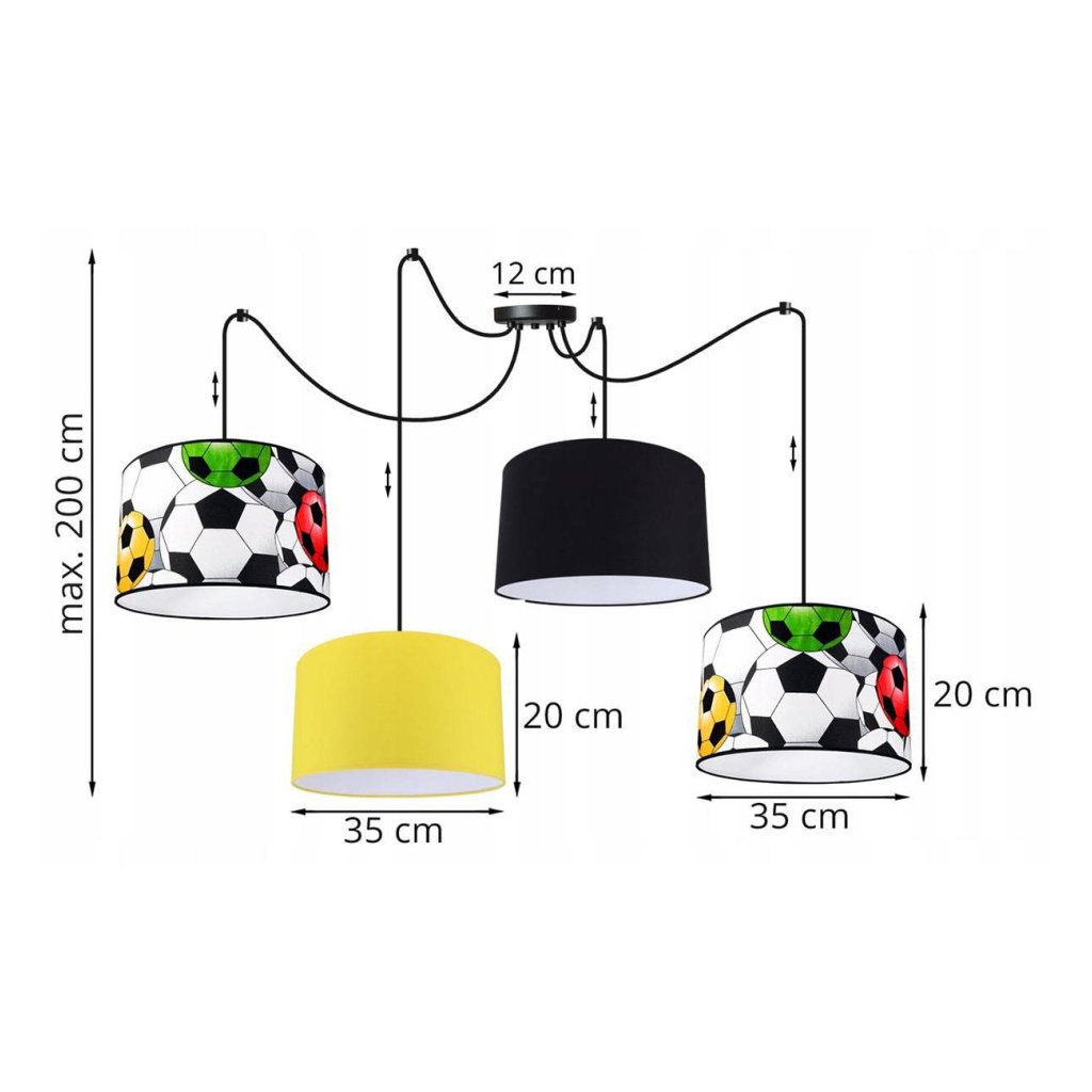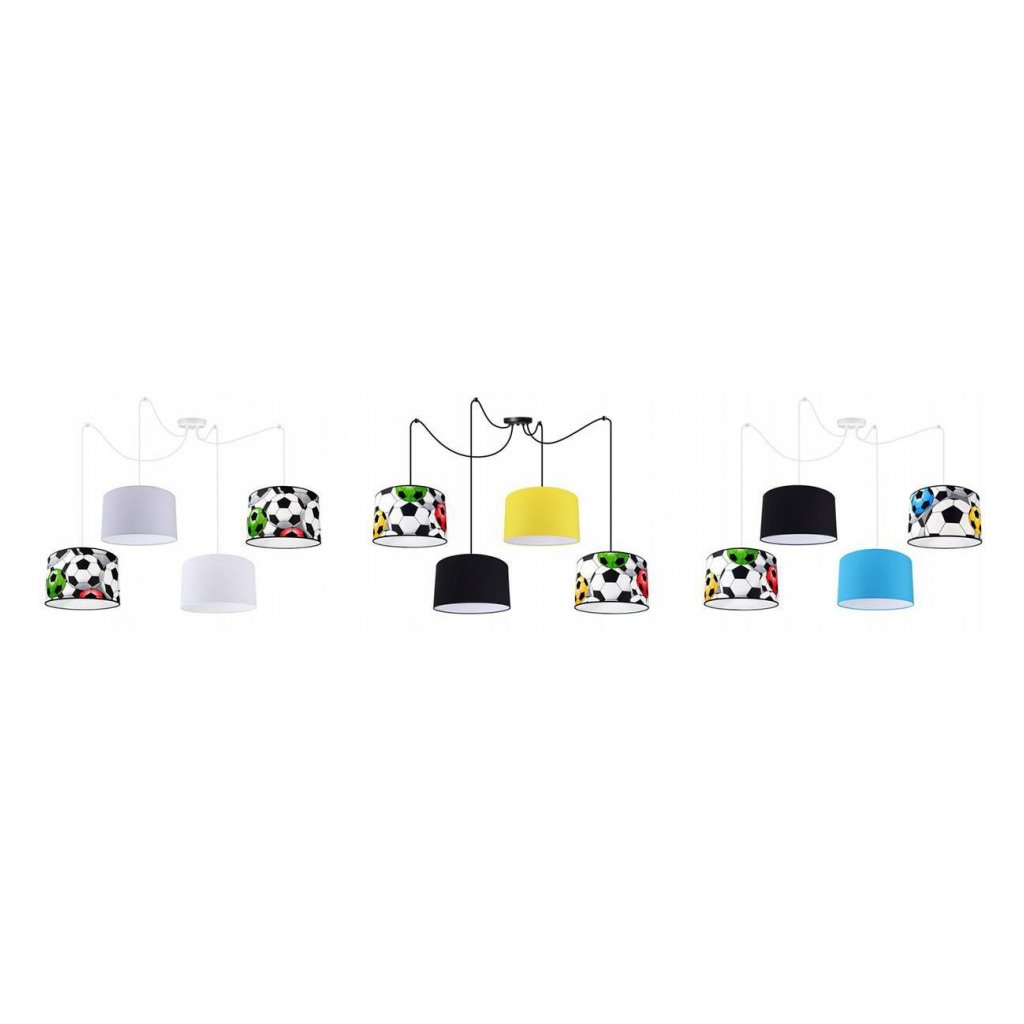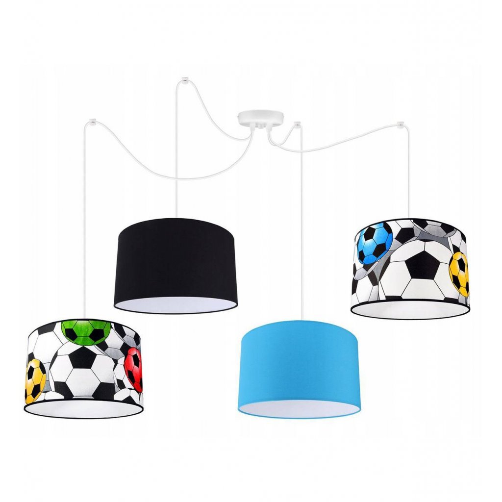 Dětské závěsné svítidlo Soccer Spider, 4x textilní stínítko se vzorem (mix 6 barev), (výběr ze 2 barev konstrukce)