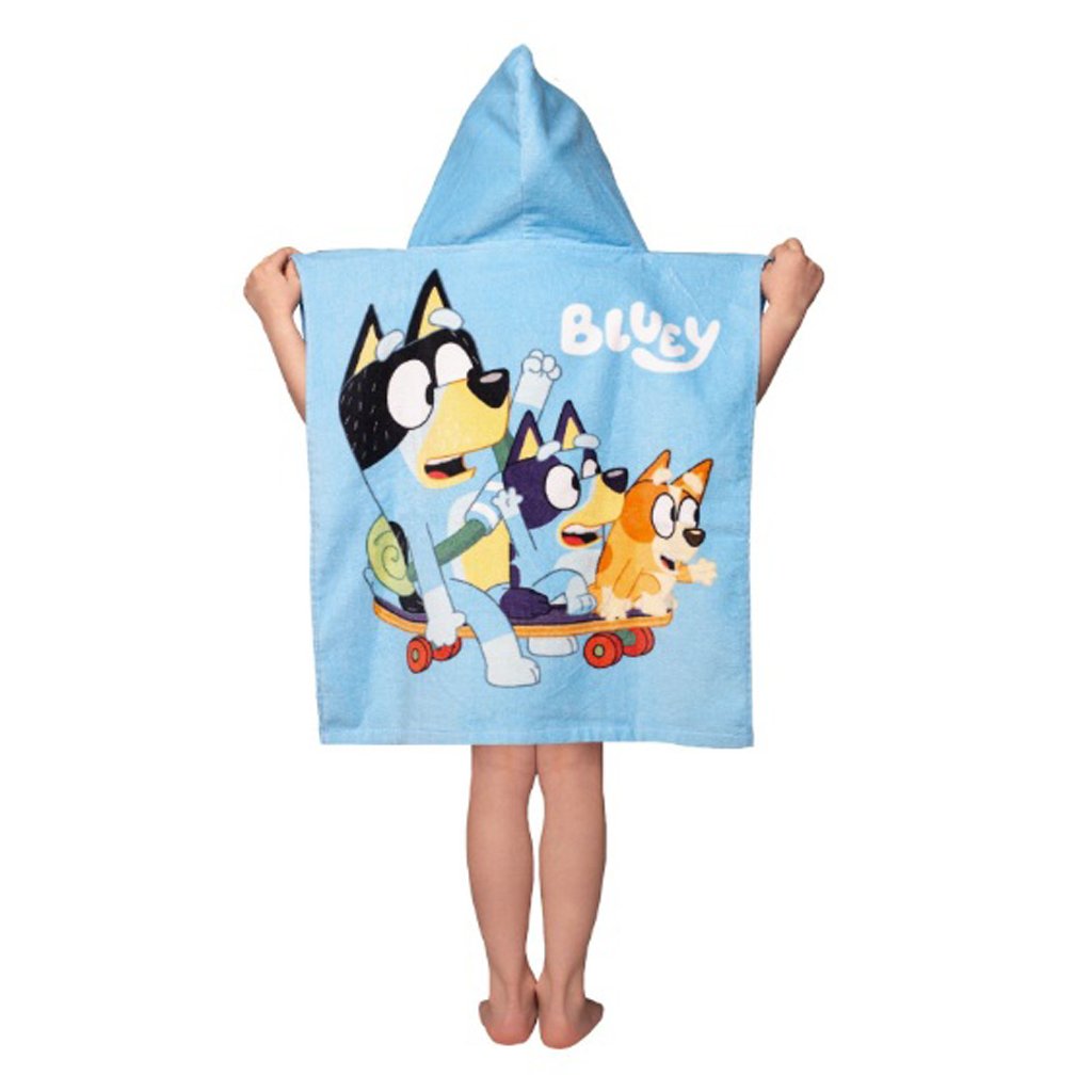 DĚTSKÝ BAVLNĚNÝ PONČO RUČNÍK S KAPUCÍ BLUEY 50X115 CM VZOROVANÁ
