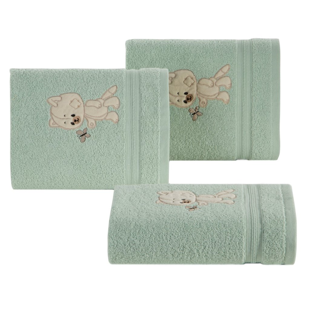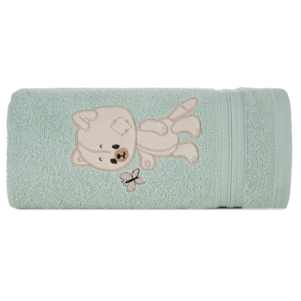 Dětská osuška s aplikací, šířka: 100 cm, délka: 100 cm, barva: mentolová, hmotnost: 350 GSM, složení: 100% bavlna.Doplňkové parametry