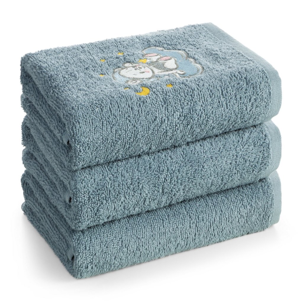 Bavlněná dětská osuška s aplikací medvídka je měkká, savá a neuvěřitelně jemná na dotek, je ideální volbou pro každodenní péči o dítě. Díky pastelově modré barvě a roztomilému motivu medvídka je tato osuška praktickým i estetickým doplňkem koupelny vašeho dítěte. Výrobek má certifikát OEKO-TEX® Standard 100, který potvrzuje jeho bezpečnost a nepřítomnost škodlivých látek, což je ideální pro citlivou dětskou pokožku. Šířka: 100 cm, délka: 100 cm, barva: světle modrá, hmotnost: 450 GSM, složení: 100 % bavlna.Podlahový materiál: 100% bavlna.