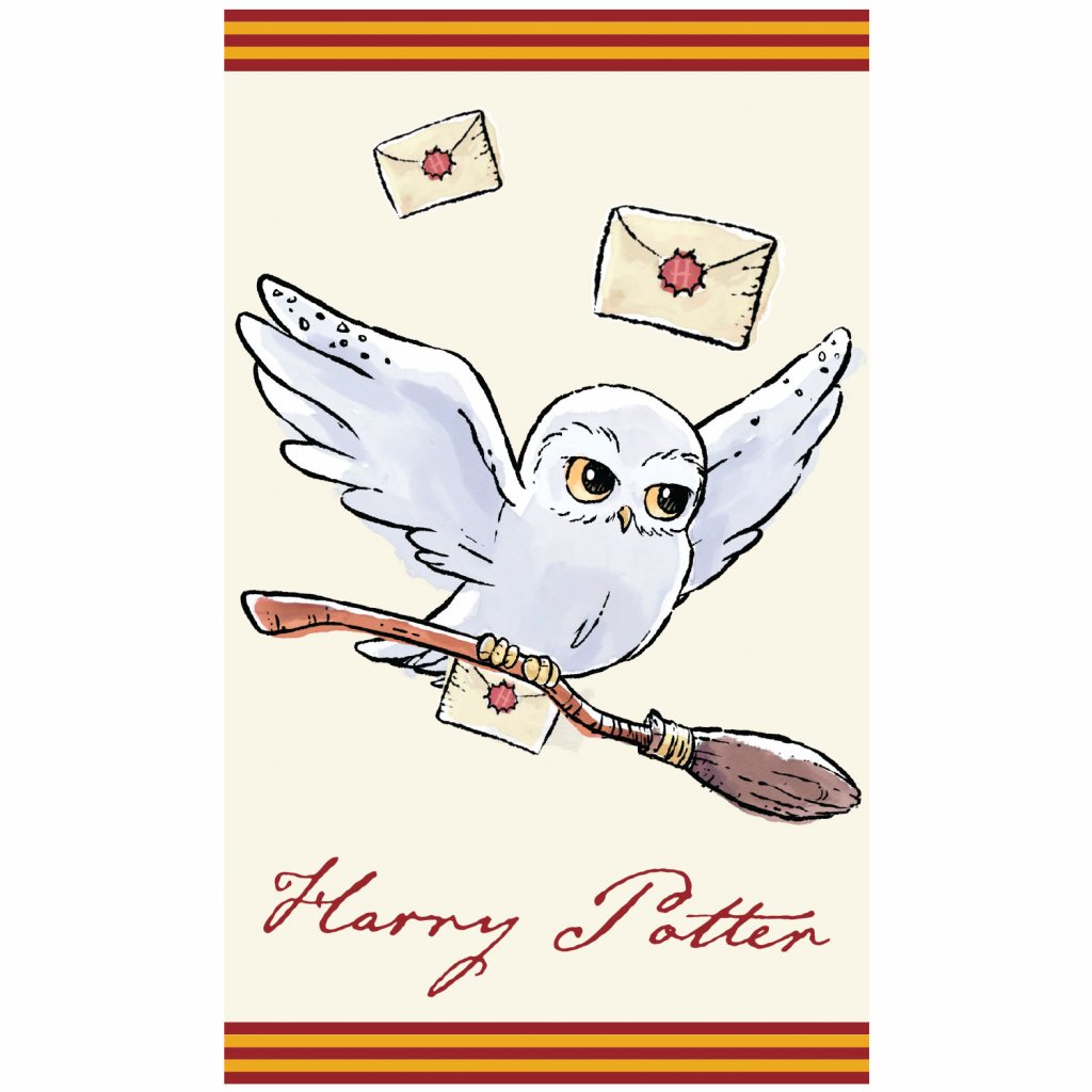 DĚTSKÝ BAVLNĚNÝ RUČNÍK HARRY POTTER HEDWIGA 30X50 CM VZOROVANÝ