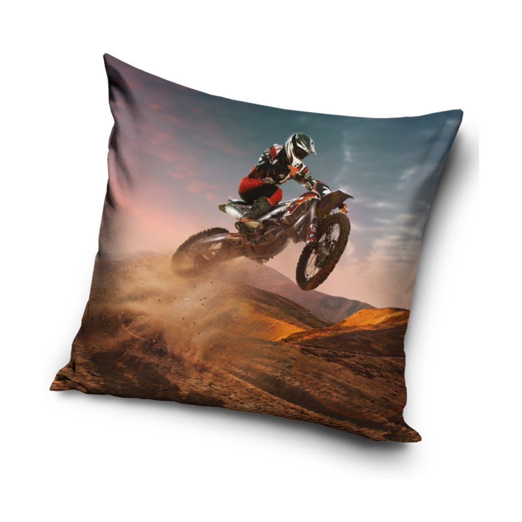 DĚTSKÝ DEKORAČNÍ POVLAK NA POLŠTÁŘ MOTOCROSS 40X40 CM VZOROVANÁ