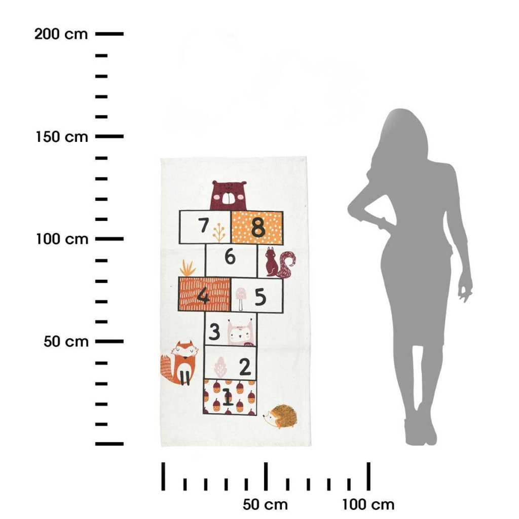 Dětský koberec Hudson o rozměrech 70 × 140 cm přináší do dětského pokoje zábavu i útulnou atmosféru . Je navržen v podobě hrací plochy pro skákání panáku , díky čemuž podporuje pohyb, hru a radost z pohybu přímo v interiéru. Barevné provedení doplněné o veselé zvířecí motivy povzbuzuje dětskou fantazii a zároveň vizuálně oživí celý prostor. Tento koberec poskytuje nejen příjemné místo pro hraní, ale také ochranu před chladem podlahy . Ideální do dětského pokoje jako funkční a hravá dekorace, která zaujme i rozveselí. Koberec se stane oblíbeným místem, kde dítě stráví svůj čas s radostí a pohybem.Doplňkové parametry