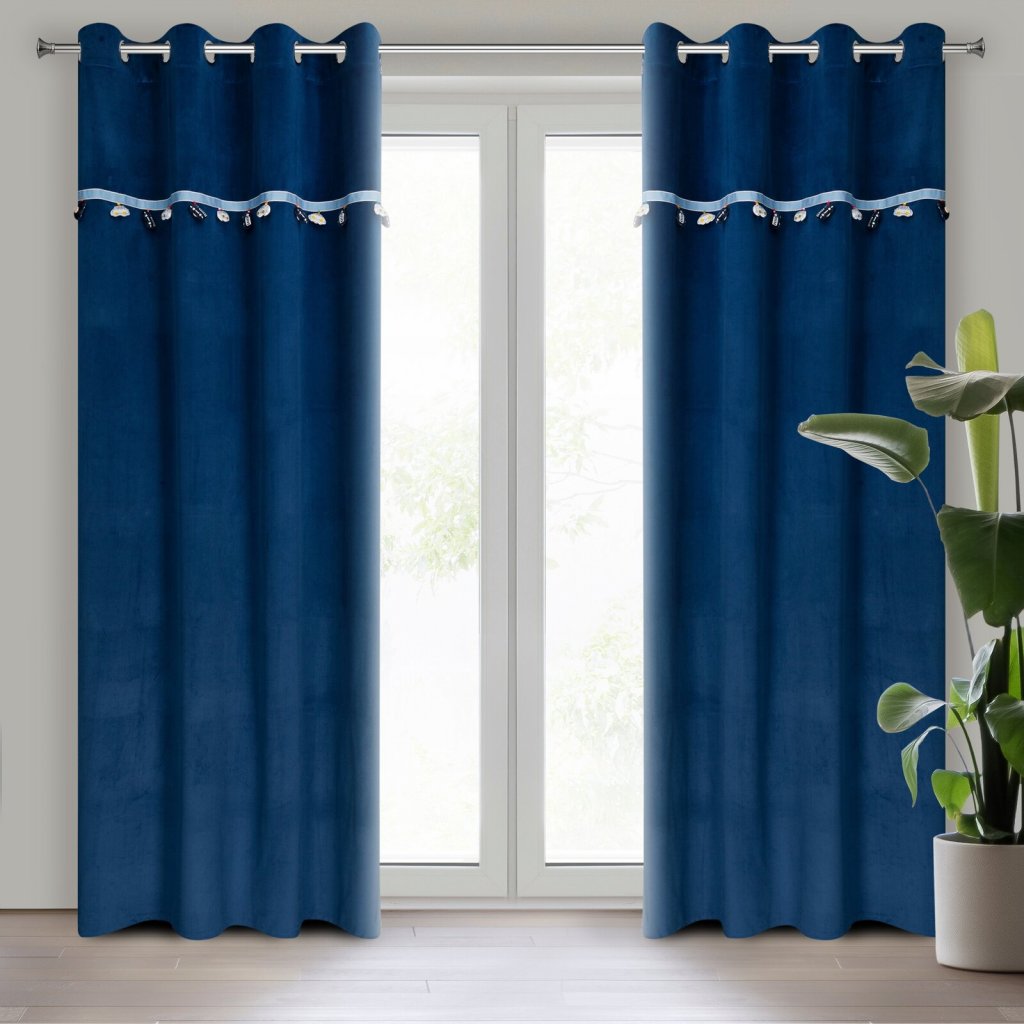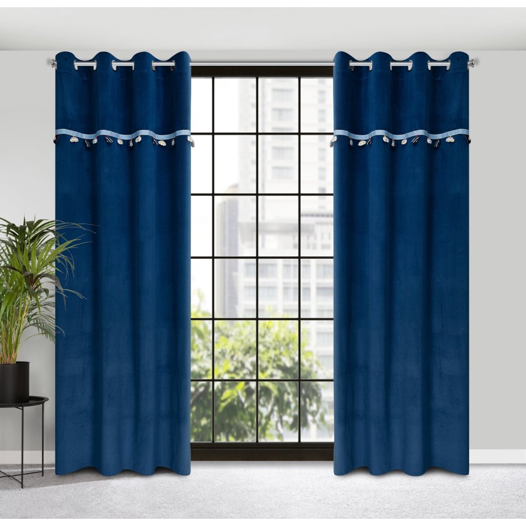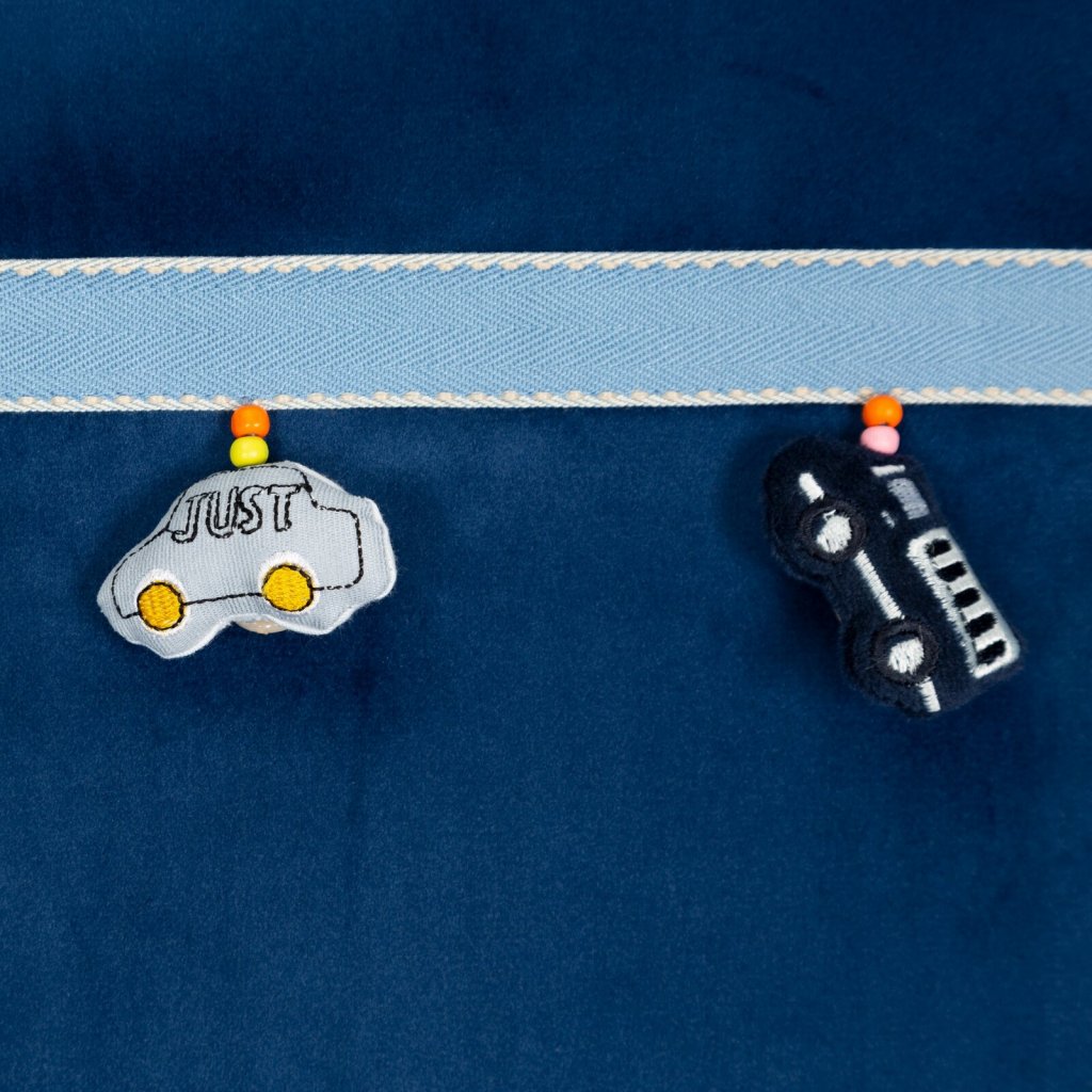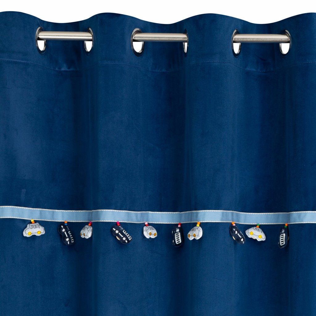 Hotový závěs se všitou ozdobnou páskou s dětským motivem, šířka: 140 cm, délka: 250 cm, barva: námořnická modrá, hmotnost: 200 GSM, složení: 100% polyester.Doplňkové parametry