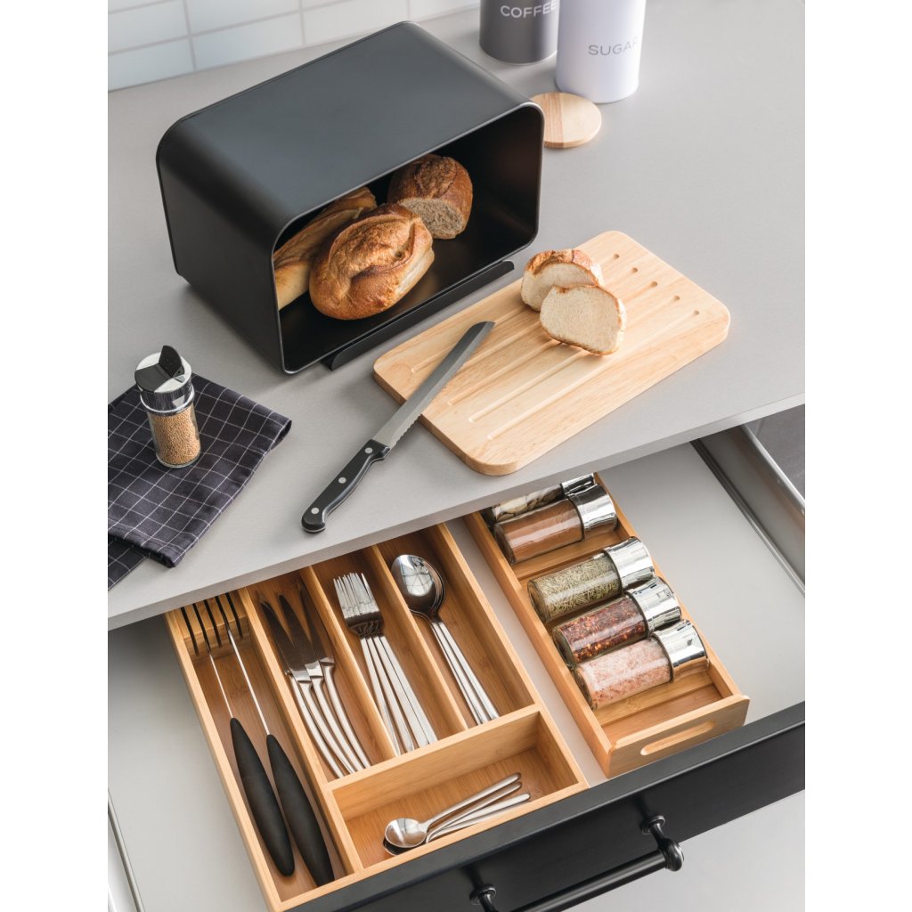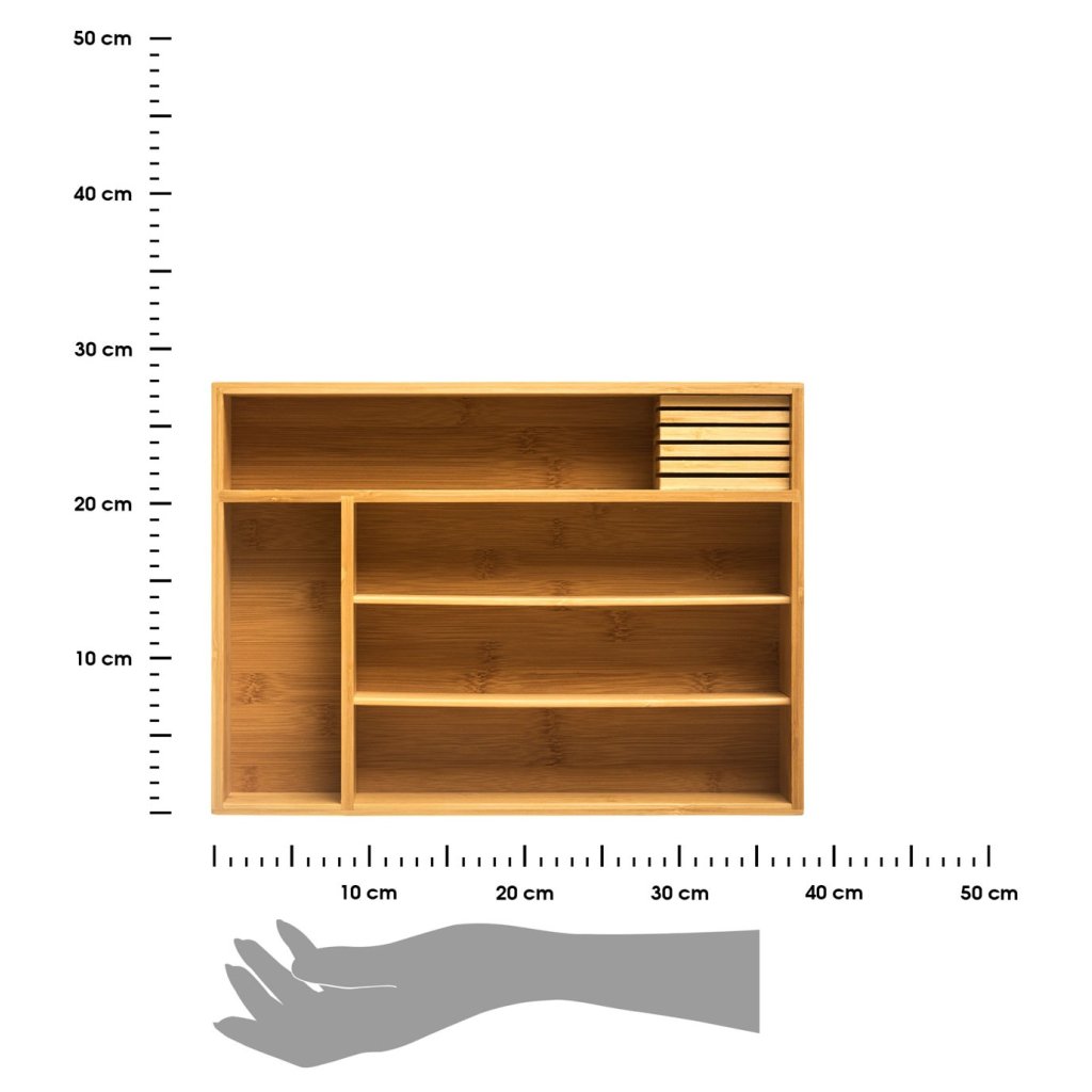 Funkční organizér do zásuvky pro univerzální použití. Umožní vám uspořádat si příbory, kuchyňské náčiní, kosmetiku nebo jiné drobnosti. Navíc, správně seřazené položky bude nyní mnohem snazší najít. Organizér je lehký a snadno se čistí. Je vyroben z kvalitního bambusového dřeva, vyznačujícího se vysokou životností a odolností proti vlhkosti. Díky přírodním barvám se organizér hodí téměř do každého stylu interiéru.Doplňkové parametry