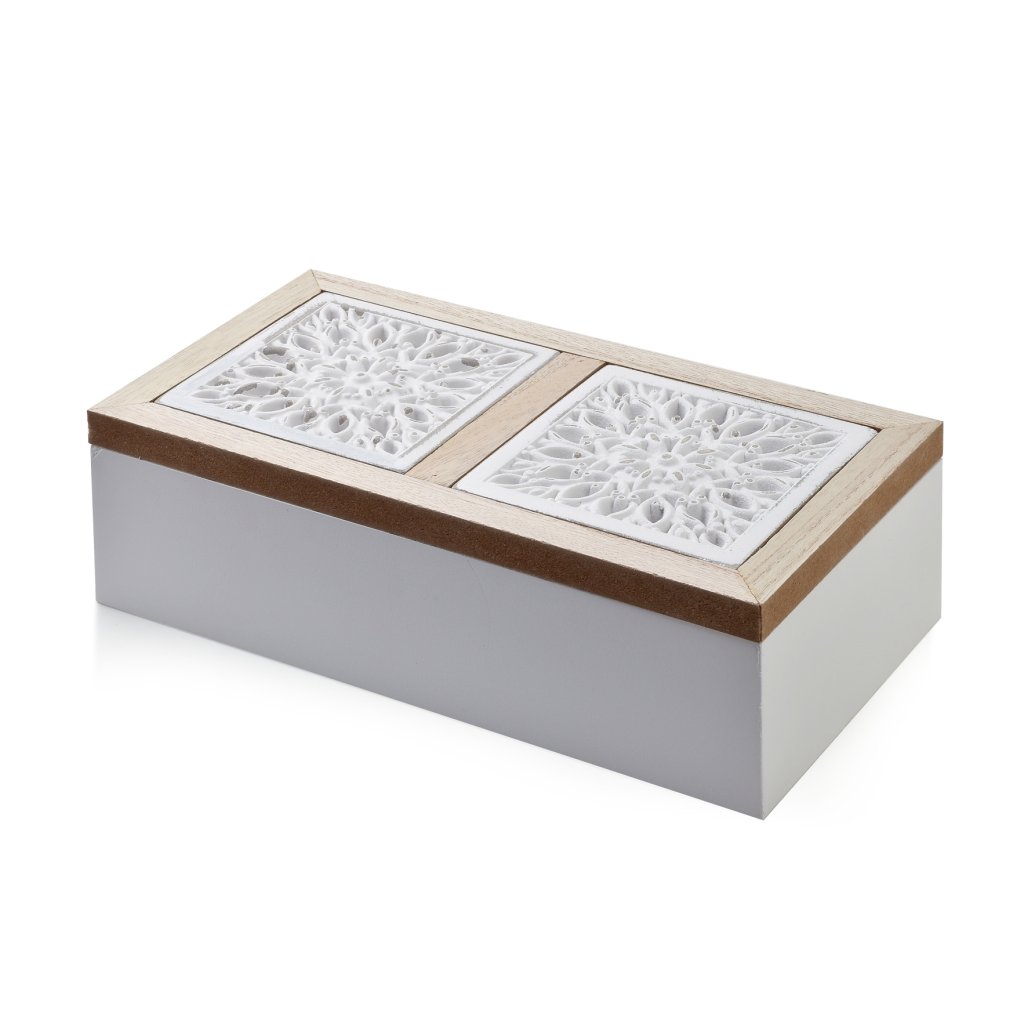 Dřevěný organizér na čaj Etnik Provencal, 24x13x7 cm