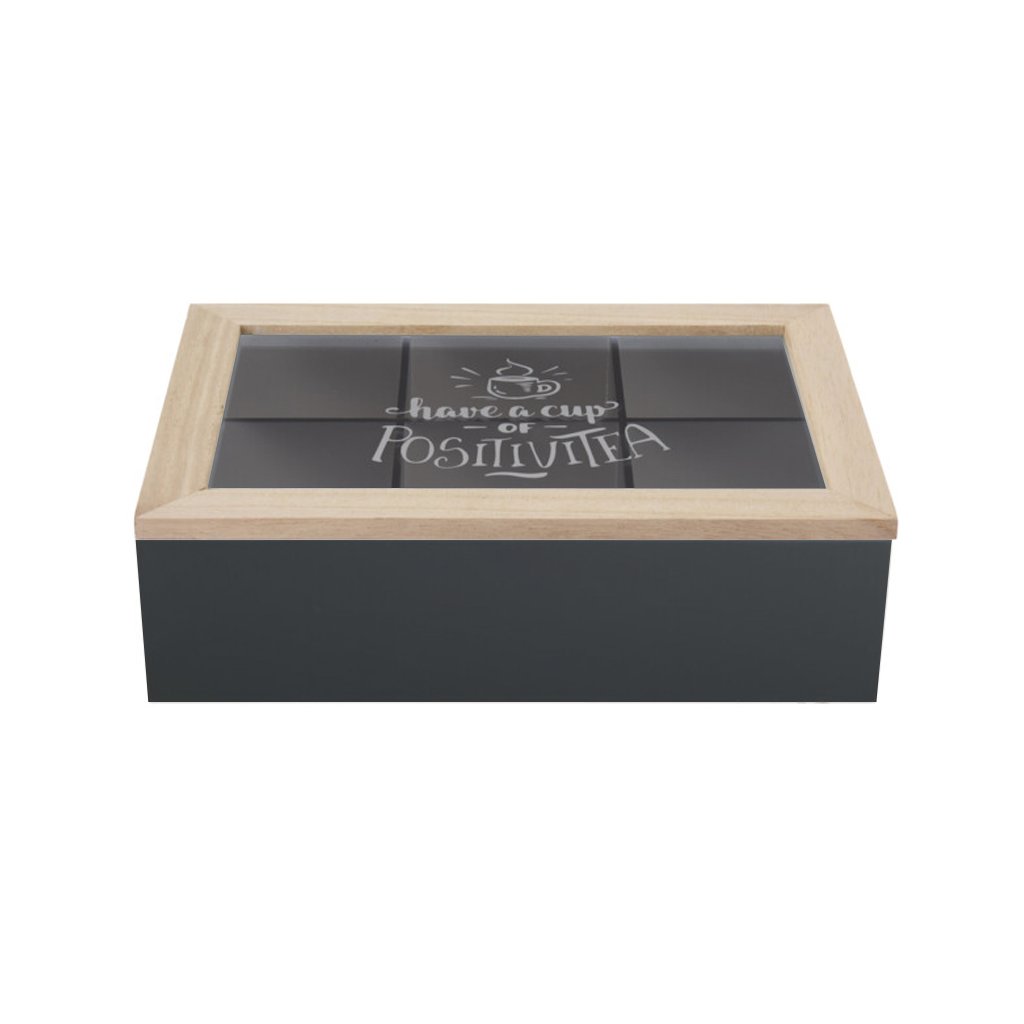 Dřevěný organizér na čaj Positive Black, 24x16,5x7 cm