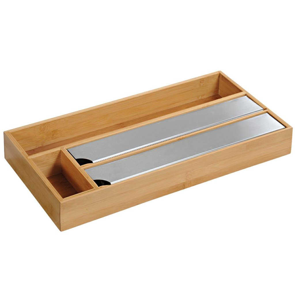Dřevěný organizér na fólie s řezačkou Quatro, 42x19x5,5 cm