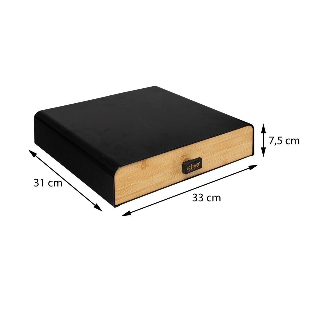 Prezentovaná nádoba představuje jedinečný způsob skladování kávových kapslí, takže od nynějška budete mít svou oblíbenou kávu vždy po ruce. Ergonomický tvar zásobníku a čtyři přihrádky umožňují umístit velké množství kapslí, což vám ušetří spoustu místa. Minimalistický vzhled boxu a tlumená barevnost dělají z nádoby kromě praktického využití i skvělý dekorativní prvek, kamkoli ji postavíte. Vyrobeno z přírodního bambusového dřeva se vyznačuje vysokou odolností a pevností.Doplňkové parametry