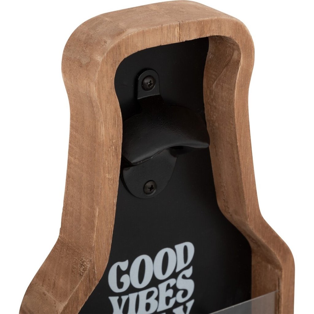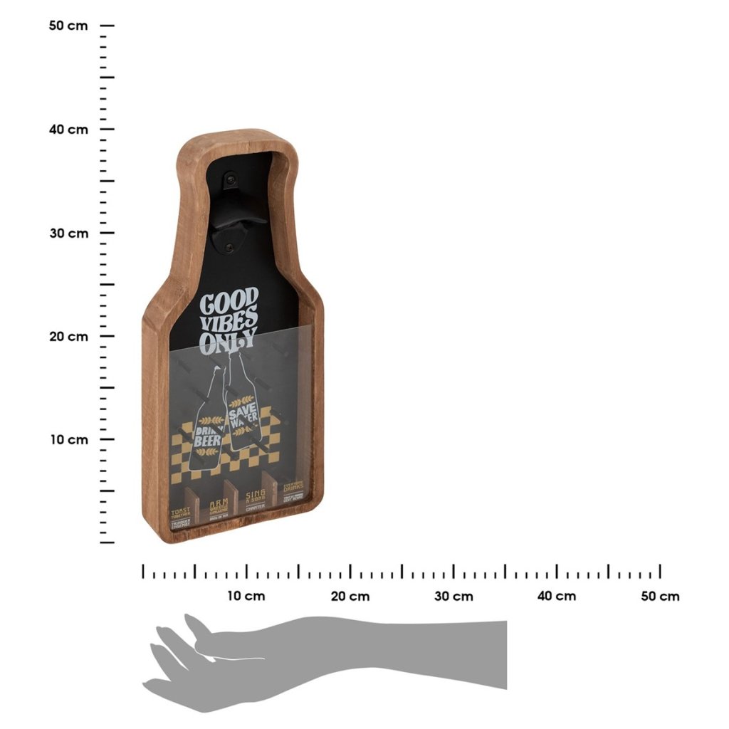 Vytvořte si doma barovou atmosféru se stylovým otvírákem na láhve s prostorem na víčky. Tento praktický a dekorativní doplněk vyrobený z kvalitního dřeva spojuje funkčnost a jedinečný design. Otevírač se jednoduše namontuje na zeď, takže bude vždy po ruce během párty a setkání s přáteli. Prostor pro uzávěry lahví, chráněný průhledným sklem, nejen usnadňuje udržování pořádku, ale je také zajímavým dekorativním prvkem. Nápis „Good Vibes Only“ dodává pozitivní energii a povzbuzuje k relaxaci v dobré společnosti. Perfektní dárek pro milovníky piva a stylových interiérových doplňků.