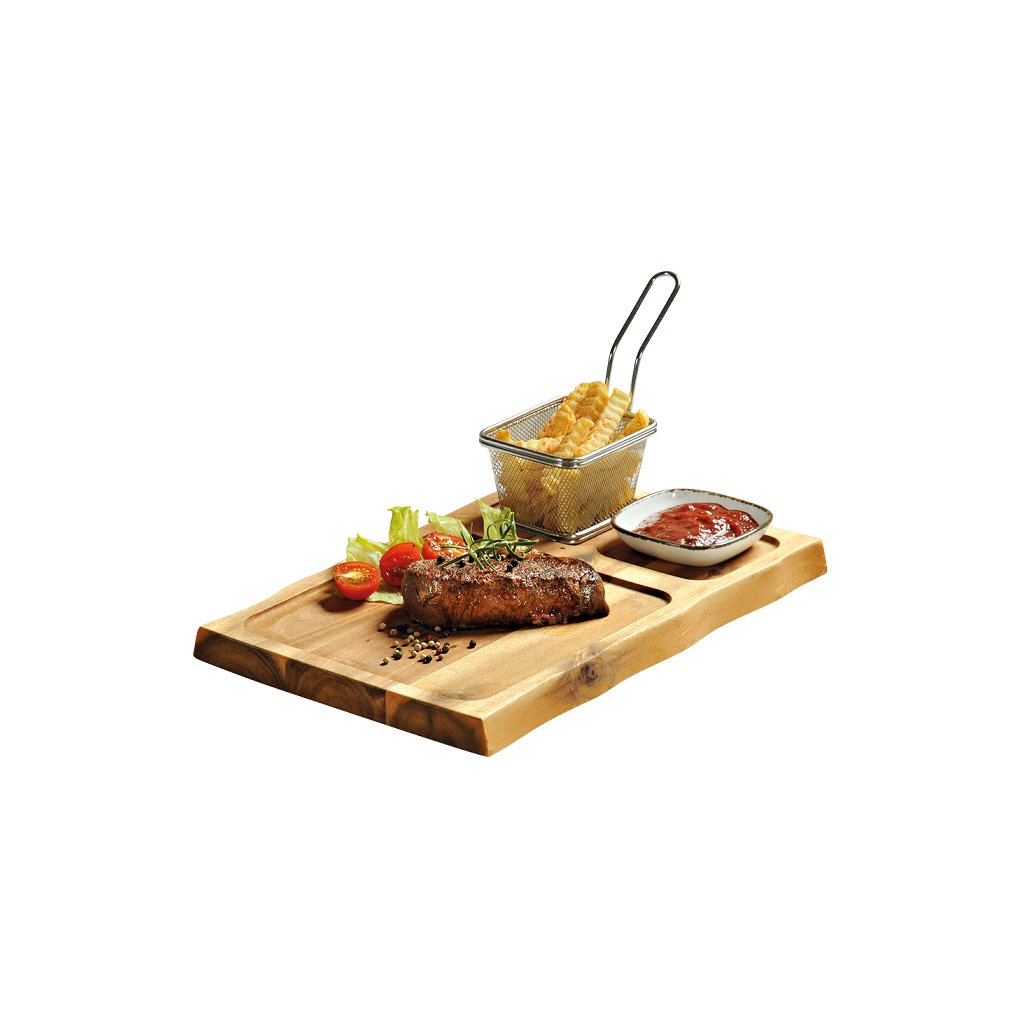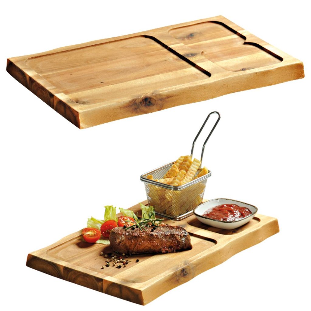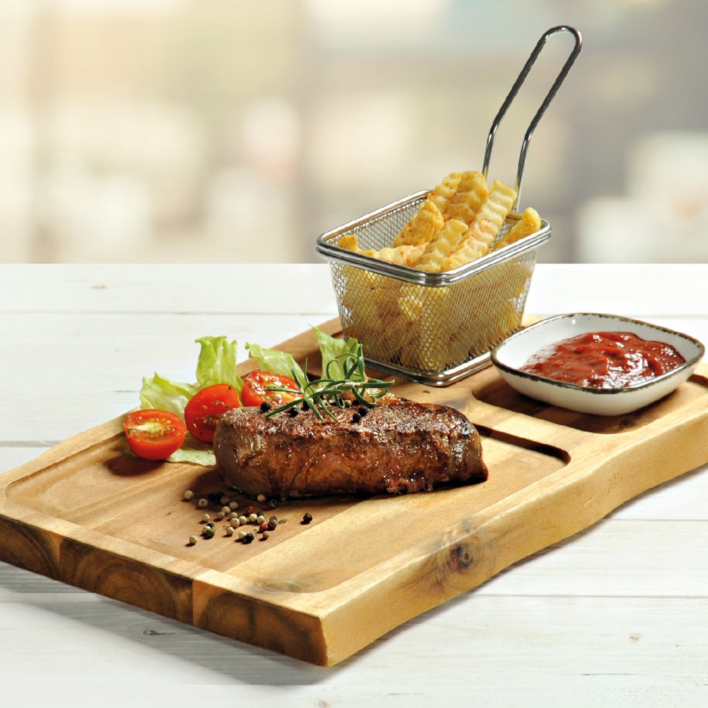 Podnos je vybaven praktickými prohlubněmi na omáčky a přílohy , což umožňuje prezentovat jídlo esteticky a přehledně . Perfektně se hodí k servírování masa, burgerů, hranolek, tapas či jiných oblíbených pochoutek .