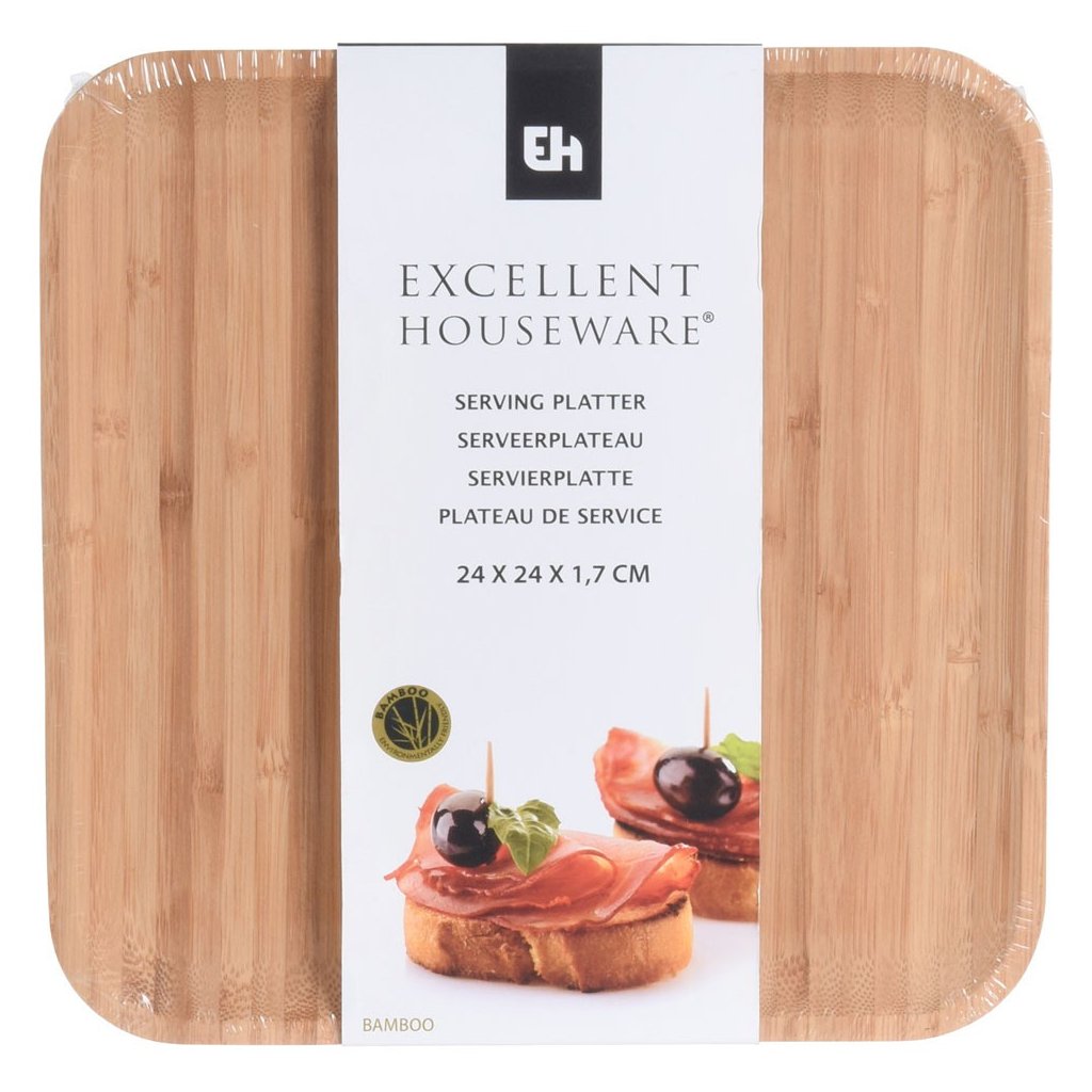 Dřevěný servírovací tác Bruce o rozměrech 17 × 17 cm je vyroben z přírodního bambusového dřeva a zaujme svým čtvercovým tvarem se zaoblenými rohy . Tento kompaktní a stylový doplněk je ideální pro servírování drobných pochoutek, ovoce, ořechů nebo chipsů .